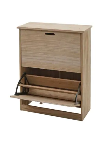 – Markeninhaber TÜV-Süd QM zertifiziert mit Nr. 12 100 59626 TMS für Qualitäts-Management in Deutschland – Mit 2 Klappfächern – Pro Klappfach zwei Schuhreihen – Platz für 2-3 Paar Schuhe pro Reihe – Bequemes Öffnen durch Eingriff bzw. Knauf – BSCI-Sozialstandards geprüft – Mit geschlossener Rückwand- Mit diesem praktischen Schuhschrank mit zwei Kippfächern für je 2-3 Schuhe pro Fach organisieren Sie Ihre Schuhe stilvoll und nachhaltig. Das Schuhregal besteht aus MVG-zertifiziertem Paulownia-Holz.- Durch die Kippvorrichtung sind Ihre Schuhe gut verstaut und gleichzeitig leicht zugänglich. Eine perfekte, platzsparende Schuh-Aufbewahrung für Ihren Flur, Eingangsbereich oder das Schlafzimmer. Maße HxBxT (ca.):Gesamt: 81x60x25 cmTiefe bei geöffneten Klappen: 44 cm Innenfächer je Klappe:Klein: 11x52x23 cmgroß: 11x52x33 cm Material:MDF aus Paulowniaholz Der Schuhkipper ist ein praktisches Schuhmöbelstück, das Ihnen dabei hilft, Ihre Schuhe organisiert und platzsparend aufzubewahren. Mit seinen Maßen passt er perfekt in Flure, Eingangsbereiche oder Schlafräume und bietet ausreichend Stauraum für Ihre Schuhe. Der Schuhschrank verfügt über 2 Klappen, die jeweils mit zwei Fächern ausgestattet sind. Jedes Fach bietet Platz für 2-3 Paar Schuhe, je nach Größe und Art der Schuhe. Durch das Kippfach-Design sind Ihre Schuhe gut geschützt und gleichzeitig leicht zugänglich. Die Schuhablage verfügt außerdem über eine geschlossene Rückwand. Dadurch werden Ihre Schuhe vor Staub und Schmutz geschützt. Mit seinem praktischen Design, der guten Verarbeitung und den umwelt- und sozialverträglichen Zertifizierungen ist der Schuhkipper die ideale Lösung für Ihre Schuh-Aufbewahrung. Bringen Sie Ordnung in Ihren Flur und genießen Sie den Komfort eines gut organisierten Schuhschranks. Der Hersteller ist erfolgreich BSCI-geprüft. Dabei wird der Hersteller verpflichtet, sich an soziale Standards zu halten. Noten von A (sehr gut) – E (ungenügend) Soziales Managementsystem (Note D), Arbeitnehmerschutz (A), Recht auf Kollektivverhandlungen/Vereinigungsfreiheit (A), Keine Diskriminierung (A), Angemessene Vergütung (B), Angemessene Arbeitszeit (D), Arbeitssicherheit und Gesundheitsschutz (B), Keine Kinderarbeit (A), Arbeitsschutz für Jugendliche (A), Keine Scheinbeschäftigung (A), Zwangsarbeit (A), Umweltschutz (B), Ethisches Geschäftsverhalten (A)Versandzustand: Zerlegt–Sicherheitshinweise für Teilartikel mit Artikelnummer 94400 Dieser Artikel ist ein Schrank und sollte nur als solcher benutzt werden. Der Artikel ist nur für den Innenbereich geeignet. Überladen Sie den Artikel nicht. Vorsicht: Verletzungsgefahr! Setzen, stellen oder stützen Sie sich nicht auf den Artikel.Vorsicht Erstickungsgefahr! Verpackungsmaterial, wie Plastikbeutel, gehören nicht in Kinderhände. Bitte von Babys und Kleinkindern fernhalten! Nicht über den Kopf ziehen! Vorsicht: Verschluckungsgefahr! Achtung dieser Artikel kann verschluckbare Kleinteile enthalten! Halten Sie die Kleinteile von Kindern fern! Prüfen Sie den Artikel regelmäßig alle 3-6 Monate auf Beschädigungen und gelöste Verbindungen. Ziehen Sie lose Schrauben wieder fest an! Sollten Beschädigungen entdeckt werden, darf der Artikel nicht mehr genutzt werden! Warnung: Kippgefahr, Unfallgefahr und Verletzungsgefahr!Ein Möbelstück, das nicht an der Wand befestigt wird, kann wenn es umfällt ein Kind oder einen Erwachsenen schwerwiegend oder sogar tödlich verletzen. Befestigen Sie daher alle Möbel mit Winkeln oder speziellen Kippschutzen (teilweise nicht im Lieferumfang enthalten) an der Wand. Achten Sie dabei immer auf mögliche Kabel oder Rohre die in der Wand verlegt sein können.Benutzen Sie diesen Artikel nur für die bestimmungsgemäße Verwendung, im technisch einwandfreien Zustand und für private Zwecke. Andere Verwendungen gelten als nicht bestimmungsgemäß und können zu schweren Verletzungen und Beschädigungen führen. Für aus bestimmungswidriger Verwendung entstandene Schäden übernimmt der Hersteller keine Haftung.Allgemeine Hinweise: Bitte lesen Sie alle Hinweise sorgfältig durch, bevor Sie den Artikel aufbauen und verwenden. Verwahren Sie alle Sicherheitsinformationen und Aufbauanleitungen gut auf. Für Ihre eigene Sicherheit und die Ihres Produktes, befolgen Sie bitte die Sicherheitshinweise. Eine falsche Handhabung könnte zu ernsten Verletzungen, beschädigtem Eigentum oder sogar dem Tod hinauslaufen.Pflegehinweise: Verwenden Sie eine weiche Bürste um losen Schmutz zu entfernen. Benutzen Sie niemals Waschmittel oder andere Putzmittel, um den Bezug zu reinigen. Entsorgungshinweise: Entsorgen Sie den Artikel umweltgerecht. Überlegen Sie Alternativen zu Entsorgung wie Spenden oder Verkaufen. Elektrische Artikel gehören nicht in den Hausmüll. Entsorgen Sie diese an einem Recyclinghof für elektrische und elektronische Altgeräte, weitere Informationen erhalten Sie bei Ihrer örtlichen Gemeindeverwaltung. Einlagerungshinweise: Der Artikel sollte trocken und sauber sein, verwahren Sie diesen geschützt in dem Karton in dem er geliefert wurde.