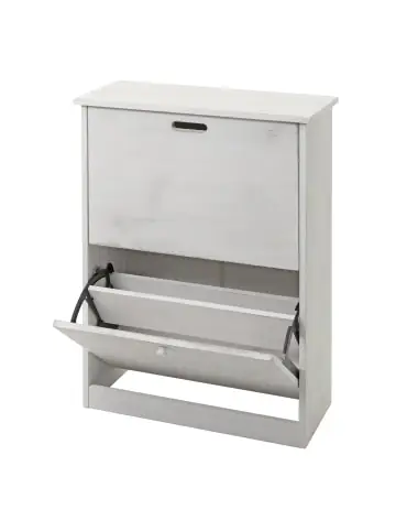 – Markeninhaber TÜV-Süd QM zertifiziert mit Nr. 12 100 59626 TMS für Qualitäts-Management in Deutschland – Mit 2 Klappfächern – Pro Klappfach zwei Schuhreihen – Platz für 2-3 Paar Schuhe pro Reihe – Bequemes Öffnen durch Eingriff bzw. Knauf – BSCI-Sozialstandards geprüft – Mit geschlossener Rückwand- Mit diesem praktischen Schuhschrank mit zwei Kippfächern für je 2-3 Schuhe pro Fach organisieren Sie Ihre Schuhe stilvoll und nachhaltig. Das Schuhregal besteht aus MVG-zertifiziertem Paulownia-Holz.- Durch die Kippvorrichtung sind Ihre Schuhe gut verstaut und gleichzeitig leicht zugänglich. Eine perfekte, platzsparende Schuh-Aufbewahrung für Ihren Flur, Eingangsbereich oder das Schlafzimmer. Maße HxBxT (ca.):Gesamt: 81x60x25 cmTiefe bei geöffneten Klappen: 44 cm Innenfächer je Klappe:Klein: 11x52x23 cmgroß: 11x52x33 cm Material:MDF aus Paulowniaholz Der Schuhkipper ist ein praktisches Schuhmöbelstück, das Ihnen dabei hilft, Ihre Schuhe organisiert und platzsparend aufzubewahren. Mit seinen Maßen passt er perfekt in Flure, Eingangsbereiche oder Schlafräume und bietet ausreichend Stauraum für Ihre Schuhe. Der Schuhschrank verfügt über 2 Klappen, die jeweils mit zwei Fächern ausgestattet sind. Jedes Fach bietet Platz für 2-3 Paar Schuhe, je nach Größe und Art der Schuhe. Durch das Kippfach-Design sind Ihre Schuhe gut geschützt und gleichzeitig leicht zugänglich. Die Schuhablage verfügt außerdem über eine geschlossene Rückwand. Dadurch werden Ihre Schuhe vor Staub und Schmutz geschützt. Mit seinem praktischen Design, der guten Verarbeitung und den umwelt- und sozialverträglichen Zertifizierungen ist der Schuhkipper die ideale Lösung für Ihre Schuh-Aufbewahrung. Bringen Sie Ordnung in Ihren Flur und genießen Sie den Komfort eines gut organisierten Schuhschranks. Der Hersteller ist erfolgreich BSCI-geprüft. Dabei wird der Hersteller verpflichtet, sich an soziale Standards zu halten. Noten von A (sehr gut) – E (ungenügend) Soziales Managementsystem (Note D), Arbeitnehmerschutz (A), Recht auf Kollektivverhandlungen/Vereinigungsfreiheit (A), Keine Diskriminierung (A), Angemessene Vergütung (B), Angemessene Arbeitszeit (D), Arbeitssicherheit und Gesundheitsschutz (B), Keine Kinderarbeit (A), Arbeitsschutz für Jugendliche (A), Keine Scheinbeschäftigung (A), Zwangsarbeit (A), Umweltschutz (B), Ethisches Geschäftsverhalten (A)Versandzustand: Zerlegt–Sicherheitshinweise für Teilartikel mit Artikelnummer 94398 Dieser Artikel ist ein Schrank und sollte nur als solcher benutzt werden. Der Artikel ist nur für den Innenbereich geeignet. Überladen Sie den Artikel nicht. Vorsicht: Verletzungsgefahr! Setzen, stellen oder stützen Sie sich nicht auf den Artikel.Vorsicht Erstickungsgefahr! Verpackungsmaterial, wie Plastikbeutel, gehören nicht in Kinderhände. Bitte von Babys und Kleinkindern fernhalten! Nicht über den Kopf ziehen! Vorsicht: Verschluckungsgefahr! Achtung dieser Artikel kann verschluckbare Kleinteile enthalten! Halten Sie die Kleinteile von Kindern fern! Prüfen Sie den Artikel regelmäßig alle 3-6 Monate auf Beschädigungen und gelöste Verbindungen. Ziehen Sie lose Schrauben wieder fest an! Sollten Beschädigungen entdeckt werden, darf der Artikel nicht mehr genutzt werden! Warnung: Kippgefahr, Unfallgefahr und Verletzungsgefahr!Ein Möbelstück, das nicht an der Wand befestigt wird, kann wenn es umfällt ein Kind oder einen Erwachsenen schwerwiegend oder sogar tödlich verletzen. Befestigen Sie daher alle Möbel mit Winkeln oder speziellen Kippschutzen (teilweise nicht im Lieferumfang enthalten) an der Wand. Achten Sie dabei immer auf mögliche Kabel oder Rohre die in der Wand verlegt sein können.Benutzen Sie diesen Artikel nur für die bestimmungsgemäße Verwendung, im technisch einwandfreien Zustand und für private Zwecke. Andere Verwendungen gelten als nicht bestimmungsgemäß und können zu schweren Verletzungen und Beschädigungen führen. Für aus bestimmungswidriger Verwendung entstandene Schäden übernimmt der Hersteller keine Haftung.Allgemeine Hinweise: Bitte lesen Sie alle Hinweise sorgfältig durch, bevor Sie den Artikel aufbauen und verwenden. Verwahren Sie alle Sicherheitsinformationen und Aufbauanleitungen gut auf. Für Ihre eigene Sicherheit und die Ihres Produktes, befolgen Sie bitte die Sicherheitshinweise. Eine falsche Handhabung könnte zu ernsten Verletzungen, beschädigtem Eigentum oder sogar dem Tod hinauslaufen.Pflegehinweise: Verwenden Sie eine weiche Bürste um losen Schmutz zu entfernen. Benutzen Sie niemals Waschmittel oder andere Putzmittel, um den Bezug zu reinigen. Entsorgungshinweise: Entsorgen Sie den Artikel umweltgerecht. Überlegen Sie Alternativen zu Entsorgung wie Spenden oder Verkaufen. Elektrische Artikel gehören nicht in den Hausmüll. Entsorgen Sie diese an einem Recyclinghof für elektrische und elektronische Altgeräte, weitere Informationen erhalten Sie bei Ihrer örtlichen Gemeindeverwaltung. Einlagerungshinweise: Der Artikel sollte trocken und sauber sein, verwahren Sie diesen geschützt in dem Karton in dem er geliefert wurde.