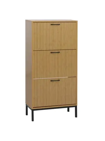 – Markeninhaber TÜV-Süd QM zertifiziert mit Nr. 12 100 59626 TMS für Qualitäts-Management in Deutschland – Stauraum in 3 Kippfächern – Oberfläche mit Melamin-Beschichtung besonders kratzfest, wasserfest – Platz für ca. 4-12 Paar Schuhe (je nach Schuhgröße) – Mit Vorrichtung für Wandbefestigung – Inklusive Befestigungsmaterial – Stabile Füße aus Metall – Inklusive Fußbodenschoner – Maximale Dauerbelastbarkeit je Kippfach: 4 kg- Dieser Schuhkipper aus Metall glänzt durch sein schlichtes, elegantes Design. Mit diesem praktischen Schuhschrank mit drei Kippfächern für bis zu 12 Paar Schuhe organisieren Sie Ihre Schuhe stilvoll und platzsparend.- Durch die praktische Kippvorrichtung sind Ihre Schuhe gut verstaut und gleichzeitig leicht zugänglich. Eine perfekte, platzsparende Schuh-Aufbewahrung für Ihren Flur, Eingangsbereich oder das Schlafzimmer. Maße (HxBxT) (ca.):Gesamt: 125x60x25 cmInnenmaße je Kippfach oben: 10x56x29 cmInnenmaße je Kippfach unten: 13x56x29 cmHöhe der Füße: 13 cmTüre: 34x56x1,5 cm Material:Korpus: MDF aus Paulownia und Kiefer mit MelaminbeschichtungBodenschoner: Kunststoff (100% Polypropylene)Füße: Metall, pulverbeschichtetGriffe: Aluminiumlegierung Der Schuhkipper P48 bringt Ordnung und Stil in Ihren Eingangsbereich und bietet eine platzsparende Möglichkeit, Schuhe sauber und griffbereit zu verstauen. Mit drei großzügig gestalteten Kippfächern ausgestattet, schafft er Stauraum für jeweils etwa 4 bis 12 Paar Schuhe pro Fach – ideal für Familien, Paare oder alle, die ihre Schuhsammlung übersichtlich organisieren möchten. Die robuste MDF-Konstruktion mit melaminbeschichteter Oberfläche sorgt für besondere Kratzfestigkeit und Wasserresistenz, wodurch der Schrank auch im Alltag zuverlässig seine hochwertige Optik behält. Dank der integrierten Vorrichtung zur Wandbefestigung steht der Schuhkipper stabil und sicher, selbst wenn die Fächer voll beladen sind. Die eleganten Metallfüße verleihen dem Möbelstück eine moderne, leichte Anmutung und sorgen gleichzeitig für hohe Stabilität. Zusätzlich schützen Fußbodenschoner sensible Böden vor Kratzern und ermöglichen ein sanftes Verschieben. Dieses Schuhregal verbindet zeitloses Design mit praktischer Funktionalität und verwandelt Flur, Garderobe oder Schlafzimmer in einen aufgeräumten, harmonischen Raum.Versandzustand: Zerlegt–Sicherheitshinweise für Teilartikel mit Artikelnummer 139891 Dieser Artikel ist ein Schrank und sollte nur als solcher benutzt werden. Der Artikel ist nur für den Innenbereich geeignet. Überladen Sie den Artikel nicht. Vorsicht: Verletzungsgefahr! Setzen, stellen oder stützen Sie sich nicht auf den Artikel.Vorsicht Erstickungsgefahr! Verpackungsmaterial, wie Plastikbeutel, gehören nicht in Kinderhände. Bitte von Babys und Kleinkindern fernhalten! Nicht über den Kopf ziehen! Vorsicht: Verschluckungsgefahr! Achtung dieser Artikel kann verschluckbare Kleinteile enthalten! Halten Sie die Kleinteile von Kindern fern! Prüfen Sie den Artikel regelmäßig alle 3-6 Monate auf Beschädigungen und gelöste Verbindungen. Ziehen Sie lose Schrauben wieder fest an! Sollten Beschädigungen entdeckt werden, darf der Artikel nicht mehr genutzt werden! Warnung: Kippgefahr, Unfallgefahr und Verletzungsgefahr!Ein Möbelstück, das nicht an der Wand befestigt wird, kann wenn es umfällt ein Kind oder einen Erwachsenen schwerwiegend oder sogar tödlich verletzen. Befestigen Sie daher alle Möbel mit Winkeln oder speziellen Kippschutzen (teilweise nicht im Lieferumfang enthalten) an der Wand. Achten Sie dabei immer auf mögliche Kabel oder Rohre die in der Wand verlegt sein können.Benutzen Sie diesen Artikel nur für die bestimmungsgemäße Verwendung, im technisch einwandfreien Zustand und für private Zwecke. Andere Verwendungen gelten als nicht bestimmungsgemäß und können zu schweren Verletzungen und Beschädigungen führen. Für aus bestimmungswidriger Verwendung entstandene Schäden übernimmt der Hersteller keine Haftung.Allgemeine Hinweise: Bitte lesen Sie alle Hinweise sorgfältig durch, bevor Sie den Artikel aufbauen und verwenden. Verwahren Sie alle Sicherheitsinformationen und Aufbauanleitungen gut auf. Für Ihre eigene Sicherheit und die Ihres Produktes, befolgen Sie bitte die Sicherheitshinweise. Eine falsche Handhabung könnte zu ernsten Verletzungen, beschädigtem Eigentum oder sogar dem Tod hinauslaufen.Pflegehinweise: Verwenden Sie eine weiche Bürste um losen Schmutz zu entfernen. Keine Waschmaschinenwäsche für das Stoffdach! Wenn dann Handwäsche mit lauwarmem Wasser (max. 30 °C), Mildes Reinigungsmittel (kein Bleichmittel, keine Lösungsmittel) weiche Bürste oder Schwamm, anschließend gründlich ausspülen, komplett trocknen lassen, bevor es wieder montiert oder verstaut wird Entsorgungshinweise: Entsorgen Sie den Artikel umweltgerecht. Überlegen Sie Alternativen zu Entsorgung wie Spenden oder Verkaufen. Elektrische Artikel gehören nicht in den Hausmüll. Entsorgen Sie diese an einem Recyclinghof für elektrische und elektronische Altgeräte, weitere Informationen erhalten Sie bei Ihrer örtlichen Gemeindeverwaltung. Einlagerungshinweise: Der Artikel sollte trocken und sauber sein, verwahren Sie diesen geschützt in dem Karton in dem er geliefert wurde.