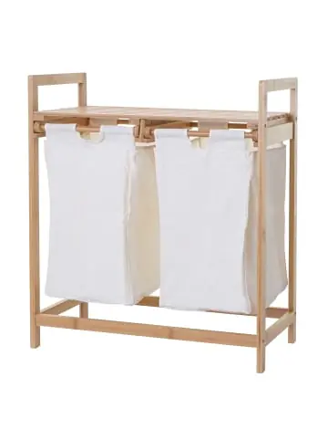 – Markeninhaber TÜV-Süd QM zertifiziert mit Nr. 12 100 59626 TMS für Qualitäts-Management in Deutschland – Gestell mit Tragegriffen – Zwei Herausnehmbare Wäschesäcke – Fassungsvermögen pro Wäschesack (ca.): 35l – Maximale Belastbarkeit obere Platte: 15,5 kg- Schluss mit rumliegender Wäsche! Diese moderne Wäschetruhe hilft Ihnen schmutzige Wäsche ordentlich und sauber zu verstauen. Gleichzeitig lassen sich durch die herausnehmbaren Wäschesäcke Kleidungsstücke im Handumdrehen sortieren.- Der schöne Wäschesortierer aus Bambus fügt sich in jeden Raum perfekt ein. Die Handgriffe sorgen für ein bequemes Tragen der Wäschetonne zur Waschmaschine. Der Beutel ist waschbar und durch sein großes Fassungsvermögen lässt sich viel Wäsche verstauen. Maße (HxBxT) (ca.):Gestell: 74x64x33 cmWäschesack: 47x27x28 cm Material:Gestell: BambusWäschesack: 65% Polyester, 35% Baumwolle Helle und dunkle Wäsche sollte getrennt gewaschen werden, da bietet es sich doch an, sie auch gleich sortiert zu sammeln. Mit dem neuen Wäschesammler aus Bambus können Sie Ihre Wäsche farblich getrennt aufbewahren und sparen so Zeit bei der Hausarbeit. Die beiden Wäschesäcke sind getrennt entnehmbar und können so bequem einzeln transportiert werden. Außerdem erfüllt dieser schicke Wäschesammler drei Aufgaben in einem, er ist praktisch, dekorativ und dank der Fertigung aus Bambus auch noch ökologisch gut verträglich.Versandzustand: Zerlegt–Sicherheitshinweise für Teilartikel mit Artikelnummer 60731 Dieser Artikel ist eine Wäschtruhe / ein Wäschekorb und sollte nur als solcher verwendet werden. Der Artikel ist nur für den Innenbereich geeignet. Überladen Sie den Artikel nicht. Vorsicht: Verletzungsgefahr! Setzen, stellen oder stützen Sie sich nicht auf den Artikel. Vorsicht: Kippgefahr & Verletzungsgefahr! Sorgen Sie immer für einen festen Stand des Artikels.Vorsicht Erstickungsgefahr! Verpackungsmaterial, wie Plastikbeutel, gehören nicht in Kinderhände. Bitte von Babys und Kleinkindern fernhalten! Nicht über den Kopf ziehen! Vorsicht: Verschluckungsgefahr! Achtung dieser Artikel kann verschluckbare Kleinteile enthalten! Halten Sie die Kleinteile von Kindern fern! Prüfen Sie den Artikel regelmäßig alle 3-6 Monate auf Beschädigungen und gelöste Verbindungen. Ziehen Sie lose Schrauben wieder fest an! Sollten Beschädigungen entdeckt werden, darf der Artikel nicht mehr genutzt werden! Benutzen Sie diesen Artikel nur für die bestimmungsgemäße Verwendung, im technisch einwandfreien Zustand und für private Zwecke. Andere Verwendungen gelten als nicht bestimmungsgemäß und können zu schweren Verletzungen und Beschädigungen führen. Für aus bestimmungswidriger Verwendung entstandene Schäden übernimmt der Hersteller keine Haftung.Allgemeine Hinweise: Bitte lesen Sie alle Hinweise sorgfältig durch, bevor Sie den Artikel aufbauen und verwenden. Verwahren Sie die alle Sicherheitsinformationen und Aufbauanleitungen gut auf. Für Ihre eigene Sicherheit und die Ihres Produktes, befolgen Sie bitte die Sicherheitshinweise. Eine falsche Handhabung könnte zu ernsten Verletzungen, beschädigtem Eigentum oder sogar dem Tod hinauslaufen.Pflegehinweise: Saugen Polstermöbel regelmäßig ab. Hat der Artikel einen Bezug pflegen und reinigen Sie diesen entsprechend nach Material (Textil, Leder, Kunstleder). Besteht ihr Möbel aus Holz nutzen Sie einen Staubwedel zur Reinigung. Für alle anderen Oberflächen und bei stärkerem Schmutz können Sie ein nebelfeuchtes Baumwolltuch verwenden. Keinesfalls sollten Sie scharfe oder scheuernde Reiniger verwenden, diese können Schäden verursachen. Für Möbel im Bad: Wasser und Kondenswasser sofort abwischen! Entsorgungshinweise: Entsorgen Sie den Artikel umweltgerecht. Überlegen Sie Alternativen zu Entsorgung wie Spenden oder Verkaufen. Elektrische Artikel gehören nicht in den Hausmüll. Entsorgen Sie diese an einem Recyclinghof für elektrische und elektronische Altgeräte, weitere Informationen erhalten Sie bei Ihrer örtlichen Gemeindeverwaltung. Einlagerungshinweise: Der Artikel sollte trocken und sauber sein, verwahren Sie diesen geschützt in dem Karton in dem er geliefert wurde.