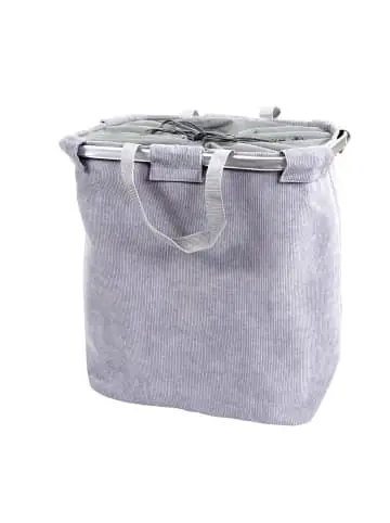 – Markeninhaber TÜV-Süd QM zertifiziert mit Nr. 12 100 59626 TMS für Qualitäts-Management in Deutschland – Füllmenge (ca.): 89 l – BSCI-Sozialstandards geprüft – Steht von allein – Zwei Fächer – Henkel zum Tragen – Vier Streben für zusätzliche Stabilität – Platzsparend zusammenfaltbar- Praktisch und dekorativ, dieser Wäschesammler ist beides. Dieser moderne Wäschesortierer hilft Ihnen schmutzige Wäsche sauber zu verstauen. Dank der Trennwand lassen sich helle und dunkle Kleidungsstücke im Handumdrehen sortieren.- Dieser funktionale Wäschebehälter ist dank des Randes aus Aluminium und der vier Streben stabil und kann problemlos selbstständig stehen. Die Wäschebox können Sie nach Gebrauch schnell und einfach zusammenklappen und platzsparend verstauen. Maße (HxBxT) (ca.):Gesamt: 54x52x32 cm Material:Gestell: AluminiumEinsatz: Stoff/Textil (100% Polyester) Dieser Wäschekorb bietet Ihnen nicht nur viel Platz, Ihre Wäsche zu sammeln und zu lagern, sondern wertet dank seines schicken Designs auch optisch Ihre Wohnung auf. Der verschnürbare Stoff am oberen Rand sorgt dafür, dass auch in gefülltem Zustand kein Teil verloren geht. Die eingearbeitete Trennwand erleichtert Ihnen die Sortierung der Wäsche. Der Wäschesack ist nicht für die Waschmaschine geeignet, sondern kann lediglich mit einem feuchten Tuch ausgerieben werden. Der Hersteller ist erfolgreich BSCI-geprüft. Dabei wird der Hersteller verpflichtet, sich an soziale Standards zu halten. Noten von A (sehr gut) – E (ungenügend) Soziales Managementsystem (Note D), Arbeitnehmerschutz (B), Recht auf Kollektivverhandlungen/Vereinigungsfreiheit (A), Keine Diskriminierung (A), Angemessene Vergütung (C), Angemessene Arbeitszeit (D), Arbeitssicherheit und Gesundheitsschutz (A), Keine Kinderarbeit (A), Arbeitsschutz für Jugendliche (A), Keine Scheinbeschäftigung (A), Zwangsarbeit (A), Umweltschutz (A), Ethisches Geschäftsverhalten (A) Auditor: Amfori, DBID: 371677 and Audit Id: 182443Versandzustand: Teilmontiert–Sicherheitshinweise für Teilartikel mit Artikelnummer 73200 Dieser Artikel ist eine Wäschtruhe / ein Wäschekorb und sollte nur als solcher verwendet werden. Der Artikel ist nur für den Innenbereich geeignet. Überladen Sie den Artikel nicht. Vorsicht: Verletzungsgefahr! Setzen, stellen oder stützen Sie sich nicht auf den Artikel. Vorsicht: Kippgefahr & Verletzungsgefahr! Sorgen Sie immer für einen festen Stand des Artikels.Vorsicht Erstickungsgefahr! Verpackungsmaterial, wie Plastikbeutel, gehören nicht in Kinderhände. Bitte von Babys und Kleinkindern fernhalten! Nicht über den Kopf ziehen! Vorsicht: Verschluckungsgefahr! Achtung dieser Artikel kann verschluckbare Kleinteile enthalten! Halten Sie die Kleinteile von Kindern fern! Prüfen Sie den Artikel regelmäßig alle 3-6 Monate auf Beschädigungen und gelöste Verbindungen. Ziehen Sie lose Schrauben wieder fest an! Sollten Beschädigungen entdeckt werden, darf der Artikel nicht mehr genutzt werden! Benutzen Sie diesen Artikel nur für die bestimmungsgemäße Verwendung, im technisch einwandfreien Zustand und für private Zwecke. Andere Verwendungen gelten als nicht bestimmungsgemäß und können zu schweren Verletzungen und Beschädigungen führen. Für aus bestimmungswidriger Verwendung entstandene Schäden übernimmt der Hersteller keine Haftung.Allgemeine Hinweise: Bitte lesen Sie alle Hinweise sorgfältig durch, bevor Sie den Artikel aufbauen und verwenden. Verwahren Sie die alle Sicherheitsinformationen und Aufbauanleitungen gut auf. Für Ihre eigene Sicherheit und die Ihres Produktes, befolgen Sie bitte die Sicherheitshinweise. Eine falsche Handhabung könnte zu ernsten Verletzungen, beschädigtem Eigentum oder sogar dem Tod hinauslaufen.Pflegehinweise: Saugen Polstermöbel regelmäßig ab. Hat der Artikel einen Bezug pflegen und reinigen Sie diesen entsprechend nach Material (Textil, Leder, Kunstleder). Besteht ihr Möbel aus Holz nutzen Sie einen Staubwedel zur Reinigung. Für alle anderen Oberflächen und bei stärkerem Schmutz können Sie ein nebelfeuchtes Baumwolltuch verwenden. Keinesfalls sollten Sie scharfe oder scheuernde Reiniger verwenden, diese können Schäden verursachen. Für Möbel im Bad: Wasser und Kondenswasser sofort abwischen! Entsorgungshinweise: Entsorgen Sie den Artikel umweltgerecht. Überlegen Sie Alternativen zu Entsorgung wie Spenden oder Verkaufen. Elektrische Artikel gehören nicht in den Hausmüll. Entsorgen Sie diese an einem Recyclinghof für elektrische und elektronische Altgeräte, weitere Informationen erhalten Sie bei Ihrer örtlichen Gemeindeverwaltung. Einlagerungshinweise: Der Artikel sollte trocken und sauber sein, verwahren Sie diesen geschützt in dem Karton in dem er geliefert wurde.