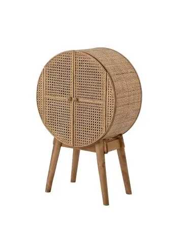 Runder Schrank mit zwei Türen von Bloomingville Bloomingville Möbel OttoSchrank mit 1 Einlegeboden und 2 TürenHergestellt aus Holz und RattanGröße ca. 51 x 80 cm Produktbeschreibung Wie alle Bloomingville Möbel überzeugt auch der wunderschöne Rattan-Schrank mit Stil und Geschmack. Schon im Eingangsbereich Deiner Wohnung begeistert er mit seiner ausgefallenen, runden Form. Der natürliche Bloomingville Schrank fügt sich wunderbar in das behaglich gestaltete Wohnen im dänischen Hygge Style oder im Landhausstil ein. Neben einer opulenten Grünpflanze kommt der herrliche Rattan-Schrank besonders gut zur Geltung. Aber auch Körbe, Korb- oder Naturholzmöbel lassen sich mit dem einzigartigen Wohnaccessoire wunderbar kombinieren. Selbstverständlich erfüllt der kleine, runde Bloomingville Schrank Otto auch einen praktischen Zweck. In der Diele kannst Du das originelle Bloomingville Möbel-Stück zur Aufbewahrung von Handschuhen, Schals und Mützen nutzen. Im Wintergarten versteckst Du in dem schicken, kleinen Rattan-Schrank den Blumendünger und die Gießkanne und im Wohnzimmer dient Otto als Geheimversteck für Deine Knabbereien. Produktinformation Artikelnummer: 57.206-7912 Material: Rattan, HolzAbmessungen:Breite ca. 51,5 cm Tiefe ca. 28 cm Höhe ca. 80 cmGewicht: Ca. 8.000 Gramm Lieferumfang: 1 Bloomingville Schrank OTTO Cabinet Rund