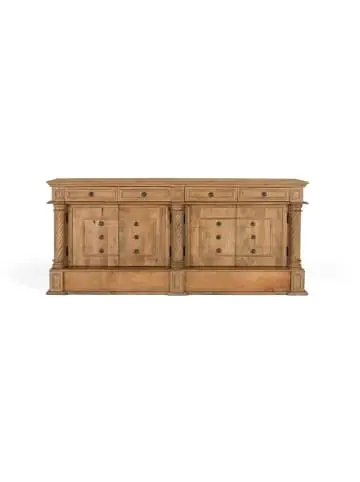 Sideboard mit 4 Schubladen und 4 Türen aus Mangoholz. Da es sich um wiedergewonnenes Holz handelt, können ursprüngliche Äste und Maserungen sichtbar sein. Höhe: 90 cm. Länge: 200 cm. Naturholz und Handarbeit, daher mögliche Abweichungen in Farbe und Maserung. Wood