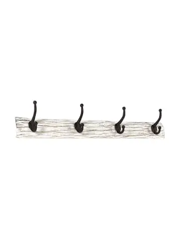 Dieses stilvolle Wandgarderobe „VINTAGE“ von Kobolo bringt rustikalen Charme und praktische Funktionalität in Flur, Schlafzimmer oder Garderobe. Jede Leiste besteht aus einem naturbelassenen Holzbrett im angesagten Shabby Chic Look und ist mit jeweils vier robusten Doppelhaken aus schwarzem Metall ausgestattet. Die Kombination aus weiß gekalktem Holz und dunklen Metallhaken verleiht dem Design einen nostalgischen Touch und macht die Garderobenleisten zu dekorativen Blickfängen mit Mehrwert. Ideal zum Aufhängen von Jacken, Taschen, Hüten oder Accessoires. Lieferung ohne Deko.