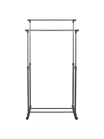 Freistehender, stabiler Kleiderständer auf Rollen. Dieser praktische Kleiderständer ist aus langlebigem Metall gefertigt und verfügt über zwei Ebenen für reichlich Aufhängeplatz. Ausgestattet mit Rollen für ein einfaches Verschieben, bietet dieser Garderobenständer eine vielseitige Lösung zum Aufhängen von Kleidung, Jacken und Accessoires. Er ist ideal sowohl für kleine als auch große Räume geeignet und hilft Ihnen, Ihren Raum besser zu organisieren.Details: Typ: Kleiderständer Farbe: Schwarz Material: Aluminium Zusätzliches Material: KunststoffDimensions: Fuß: 75×42 Tiefe: 42 cm Breite: 75 cm Höhe: 160 cm Gewicht: 2 kgSie kaufen: 1 x GarderobenständerProduktvorteile: Rollfüße für einen einfachen Transport, Gut kombinierbar mit vielen Einrichtungsstilen, Dekorativ und zugleich funktional, Pflegeleichtes und strapazierfähiges Material, Unkomplizierte SelbstmontageMontage: Nicht montiert. 20 – 40 Min.Pflegeanleitung:Aluminium: 1.Bitte ausschließlich handelsübliche, milde Reinigungsmittel und weiche Tücher verwenden, wobei feuchte Stellen sofort trocken gerieben werden sollten 2.Vermeiden Sie scheuernde Reiniger, da diese die Oberfläche beschädigen können 3.Bei Chrom und Kupfer regelmäßig mit speziellen Pflegemitteln polieren.Kunststoff: 1.Bitte ausschließlich milde Reinigungsmittel und weiche Tücher verwenden. Feuchte Stellen sofort trocken reiben.