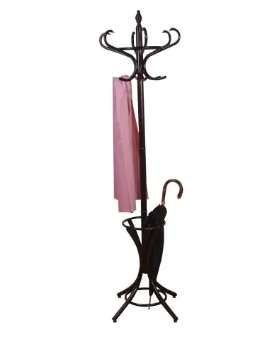 Eleganter Garderobenständer aus Massivholz – in 8 edlen Farben erhältlich.Bringen Sie stilvolle Ordnung in Ihr Zuhause mit diesem zeitlosen Garderobenständer aus massivem Birkenholz, der in acht attraktiven Farben erhältlich ist: Braun, Erle, Brombeere, Rot, Schwarz, Weiß, Natur und Mahagoni. So lässt sich das Modell perfekt an Ihre Einrichtung im Landhausstil, modern oder klassisch anpassen. Gefertigt aus hochwertigem Massivholz (Birke) und mit einem drehbaren Oberkranz (Ø 51 cm) ausgestattet, bietet der Garderobenständer 6 stabile Doppelkleiderhaken für Jacken, Taschen oder Hüte. Eine integrierte Schirmhalterung sorgt zusätzlich für praktischen Stauraum im Flur, Eingangsbereich oder Büro. Dank der stabilen Konstruktion mit einem Fußdurchmesser von 56 cm und einer Belastbarkeit von bis zu 20 kg ist dieser Kleiderständer nicht nur dekorativ, sondern auch äußerst funktional. Die Lieferung erfolgt zerlegt mit bebilderter Montageanleitung.Produktdetails im Überblick: Material: Massivholz Birke gebeizt & lackiert In 8 Farben wählbar: Braun, Erle, Brombeere, Rot, Schwarz, Weiß, Natur, Mahagoni Maße: Ø 56 cm x Höhe 184 cm Drehbarer Kranz: Ø 51 cm mit 6 Doppelhaken Zusatzfunktion: Regenschirmhalter Belastbarkeit: ca. 20 kg Lieferumfang: Zerlegt inkl. Aufbauanleitung (ohne Dekoration)Ob im modernen Eingangsbereich, im klassischen Flur oder im Büro mit Charakter – dieser hochwertige Garderobenständer sorgt für einen stilvollen ersten Eindruck und frischen Wind in Ihren Räumen. Jetzt entdecken und stilvoll Ordnung schaffen!- Kultiger Garderobenständer aus massivem Birkenholz – hochwertig verarbeitet- Drehbarer Oberkranz mit Ø 51 cm und 6 Doppelhaken für Jacken, Hüte & Accessoires- Integrierte Regenschirm-, Stockhalterung – praktische Zusatzfunktion- Maße: ca. Ø 56 x H. 184 cm – ideal für Flur, Diele, Büro oder Empfang- In 8 Farben wählbar – stilvolle Optik für jeden Eingangsbereich
