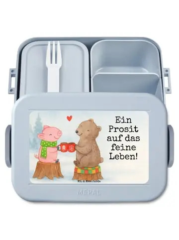 MEPAL Bento-Box von Mr. & Mrs. Panda – praktisch, schön und durchdacht. Diese Bento-Box ist mit herausnehmbaren Einsätzen ausgestattet und wird inklusive Snackgabel geliefert, damit du deine Mahlzeiten sauber trennen kannst. Sie ist Element-frei, Freundlich und damit bestens für den täglichen Gebrauch geeignet. Schüssel und Einsätze sind mikrowellengeeignet (ohne Deckel), so kannst du Gerichte direkt erwärmen. Die Box ist spülmaschinenfest, was dir viel Zeit spart. Farben: Salbeigrün, Hellblau und Pastellrot – fröhliche Töne für jeden Tag.kompakte Abmessungen; Inhalt: großzügiges Fassungsvermögen; Gewicht: angenehm leicht. Material: PP, TPE, ABS. Druckfläche vorhanden – perfekt, wenn du die Box personalisieren möchtest. Die clevere Aufteilung mit mehreren Fächern verhindert das Vermischen von Speisen und sorgt für appetitliche Lunches. Ob du ein warmes Gericht, Salat oder Snacks mitnehmen willst – diese MEPAL Bento-Box vereint Funktionalität und Design in einem und macht die Mittagspause angenehmer.Glühschwein Sause – Weihnachtsfreude: In dieser charmanten Winterlandschaft zeigen uns unser fröhliches Schweinchen und der liebevolle Bär, wie wichtig es ist, die Momente mit den Juwelen in unserem Leben zu genießen. Auf einem Baumstumpf verklärt, stoßen sie mit ihren bunten Tassen an und schicken ein süßes Herzchen in die Welt. ‚Ein Prosit auf das feine Leben!‘ ist nicht nur ein fröhlicher Ausruf, sondern macht uns bewusst, dass wir schätzen sollen, was wir haben. Umgeben von der Magie der Weihnachtszeit laden sie dazu ein, zuMenschmen zu sein und diese kostbaren Augenblicke mit Lachen und Freude zu füllen. Lasse die Wärme und die Freundschaft in dein Herz – genau wie sie!Magische Geschenkideen: Tauche ein in die zauberhafte Welt der Winter Kollektion von Mr. & Mrs. Panda, wo jedes Motiv und jeder Spruch die Liebe zum Detail und die Freude am winterlichen Zauber zum Ausdruck bringt. Lass dich verzaubern von handgezeichneten Aquarellmotiven, die nicht nur Weihnachten, sondern den ganzen Winter über dein Herz erwärmen. Vom ersten Advent bis zum Heiligabend, von zarten Schneeflocken bis zu fröhlichen Wintermotiven mit Rotkehlchen, Pinguin und Weihnachtsmaus – diese Kollektion bringt die Magie der Winterzeit direkt zu dir nach Hause. Perfekt für jene, die auf der Suche nach einzigartiger Weihnachtsdeko sind oder das ideale Weihnachtsgeschenk erspähen möchten. Jedes Produkt erzählt eine eigene kleine Geschichte, die das Wintergefühl in deinem Zuhause lebendig macht. Gönne dich selbst oder deinen Liebsten ein Stückchen winterliches Glück mit den liebevollen Kreationen von Mr. & Mrs. Panda.Unser Produkt wird gesucht als: Bär, Meal Prep Box, Frischhaltedose, Alles Gute, Essensbox, Bento Box, Snackbox, Bento-Brotdose, Jausenbox, Vesperbox, Weihnachten, Lunchbox, Lebensmittelbehälter, Snackdose, Schwein, Bentobox, Weihnachtszeit, Essensbehälter, Prost