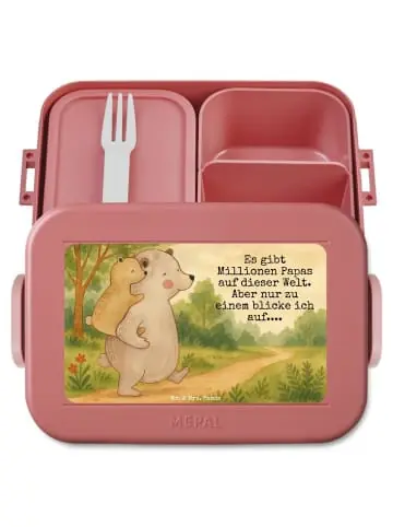Bento-Brotdose von Mr. & Mrs. Panda – die perfekte Wahl, wenn du eine durchdachte und hübsche Brotdose suchst. Unsere Bento-Brotdose verfügt über herausnehmbare Einsätze und eine kleine Snackgabel, damit du deine Mahlzeiten clever trennen kannst. Die Materialien sind Element-frei und Freundlich, sodass nichts an Geschmack oder Sicherheit fehlt. Schüssel und Einsätze sind mikrowellengeeignet (ohne Deckel) und machen das Aufwärmen zum Kinderspiel. Die Brotdose ist spülmaschinenfest, was die Reinigung enorm vereinfacht. Erhältlich in Salbeigrün, Hellblau und Pastellrot – frische Farben für jeden Tag. Maße: kompakte Außenmaße, Inhalt: großzügiges Fassungsvermögen, Gewicht: angenehm leicht. Hergestellt aus PP, TPE und ABS und mit einer Druckfläche, ideal zum Personalisieren oder Bedrucken. Ob für die Schule, das Büro oder unterwegs – die clevere Innenaufteilung hält Snacks getrennt und sorgt für ansprechende Lunchbox-Momente. Robust, leicht und elegant gestaltet – diese Bento-Brotdose begleitet dich zuverlässig durch den Tag und macht das Mittagessen abwechslungsreich und praktisch.Papa Bär Motiv – Perfektes Geschenk!: Das Motiv zeigt die unvergessliche Bindung zwischen einem Vater und seinem Kind. Der große Bär trägt stolz den kleinen Bären auf seinem Rücken, während er freudig einen Schritt nach vorne macht. Ihre Gesichter strahlen pure Glückseligkeit aus und drücken die innige Beziehung aus, die nur innerhalb einer Familie entstehen kann. Das Zitat, „Es gibt Millionen Papas auf dieser Welt. Aber nur zu einem blicke ich auf