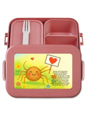 MEPAL Bento-Box von Mr. & Mrs. Panda – praktisch, schön und durchdacht. Diese Bento-Box ist mit herausnehmbaren Einsätzen ausgestattet und wird inklusive Snackgabel geliefert, damit du deine Mahlzeiten sauber trennen kannst. Sie ist Element-frei, Freundlich und damit bestens für den täglichen Gebrauch geeignet. Schüssel und Einsätze sind mikrowellengeeignet (ohne Deckel), so kannst du Gerichte direkt erwärmen. Die Box ist spülmaschinenfest, was dir viel Zeit spart. Farben: Salbeigrün, Hellblau und Pastellrot – fröhliche Töne für jeden Tag.kompakte Abmessungen; Inhalt: großzügiges Fassungsvermögen; Gewicht: angenehm leicht. Material: PP, TPE, ABS. Druckfläche vorhanden – perfekt, wenn du die Box personalisieren möchtest. Die clevere Aufteilung mit mehreren Fächern verhindert das Vermischen von Speisen und sorgt für appetitliche Lunches. Ob du ein warmes Gericht, Salat oder Snacks mitnehmen willst – diese MEPAL Bento-Box vereint Funktionalität und Design in einem und macht die Mittagspause angenehmer.Agathe – Glücksbringende Motivation: Lerne von der reizenden Spinne Agathe, die uns mit ihrem lichten Lächeln und dem Schild voller Dankbarkeit zeigt, wie schön es ist, die kleinen Dinge im Leben zu schätzen. Ihr Herzchen darüber symbolisiert Liebe und Vertrauen – die Grundlagen unseres Glücks. Mit ihrer herzlichen Botschaft, ‚Lerne, die kleinen Dinge zu schätzen. Freue dich über magische Momente. Trage auch bei Dunkelheit den Sonnenschein in dir. Vertraue in dich und sei dir immer sicher, dass du wunderbar bist, genauso wie du bist!‘, lädt sie uns ein, jeden Tag zu genießen und für die kleinen Freuden offen zu sein.Einzigartige Spinne Agathe Artikel: Erlaube dir einen Moment, in die zauberhafte Welt von Mr. & Mrs. Panda einzutauchen, wo die Spinne Agathe mit ihren entzückenden Motiven und lebensbejahenden Sprüchen regiert. Diese Kollektion ist ein Tribut an die unerwartete Freundschaft zwischen Mrs. Panda und der kleinen Spinne Agathe, die sich eines Tages hinter ihrer Kaffeemaschine versteckte. Jedes Produkt, verziert mit diesen bezaubernden Motiven, stellt eine kleine Oase der Freude und des Glücks dar. Ob für dich selbst zum Genießen und Inspirieren oder als einzigartiges Geschenk – die Spinne Agathe Kollektion bringt Leichtigkeit und Charme in jedes Heim. Lass dich von der sorgfältig gefertigten Auswahl an Produkten inspirieren, die jede Ecke deines Lebens mit Optimismus und Freude erfüllen.Unser Produkt wird gesucht als: Lebensmittelbehälter, Snackdose, Essensbox, Essensbehälter, Meal Prep Box, Lunchbox, Motivation, Vesperbox, Merchandise, Snackbox, Dankeschön, Glück, Jausenbox, Bento-Brotdose, Bento Box, Frischhaltedose, Bentobox, Vertrauen, Liebe