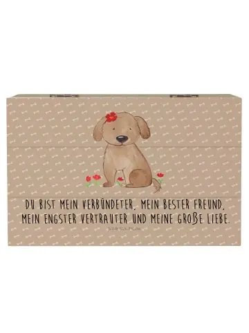 Entdecke die einzigartige Holzkiste von Mr. & Mrs. Panda! Diese Kiste ist ideal, um all deine kostbaren Erinnerungen aufzubewahren. Ob für Fotos, kleine Schätze oder zur Dekoration – sie nimmt alles gerne auf. Mit robustem Holzfaser-Material gefertigt, strahlt sie Beständigkeit und Stil aus. Die liebevoll gestalteten Motive und Sprüche machen sie zum Blickfang in jedem Raum. Dank der stabilen Einschlagscharniere lässt sich die Kiste einfach öffnen und schließen. Diese Holzkiste ist nicht nur eine praktische Aufbewahrungslösung, sondern auch eine umweltfreundliche Geschenkbox, die du für deine Liebsten verwenden kannst. Bitte achte darauf, die Oberfläche mit einem feuchten Tuch zu reinigen, damit sie lange schön bleibt. Sie ist in verschiedenen Größen erhältlich und bietet Lösungen für alle deine Aufbewahrungsbedürfnisse.Hundedame Freundschaftsmotiv: Diese zauberhafte Hundedame mit einer hübschen Blume auf ihrem Kopf verkörpert die pure Hundeliebe. Sie strahlt eine unwiderstehliche Anziehungskraft aus und erinnert uns daran, wie wertvoll die Zeit ist, die wir mit unseren Vierbeinern verbringen. Mit ihrem liebevollen Blick und ihrem verspielten Wesen ist sie der perfekte Begleiter für jeden Hundebesitzer. Ihr Motto „Du bist mein Verbündeter, mein bester Freund, mein engster Vertrauter und meine große Liebe“ fängt ihre innige Beziehung zu ihrem Frauchen perfekt ein. Diese Motive zeigen nicht nur die Freude, die ein Hund ins Leben bringt, sondern auch das Glück, das eine solch besondere Hunde-Freundschaft mit sich bringt. Egal, ob beim gemeinMenschen Spielen im Park oder beim gemütlichen Kuscheln auf dem Sofa, die Hundedame ist immer bei uns und sorgt für unvergessliche Momente. Lassen Sie sich von ihrer positiven Energie anstecken und feiern Sie die unzertrennliche Verbindung zwischen Mensch und Hund.Hunde Kollektion – Hochwertig & Liebevoll: Die Hunde Kollektion von Mr. & Mrs. Panda zelebriert die tiefe Verbundenheit zwischen Hunden und ihren Besitzern. Jedes Produkt dieser Linie spricht die unendliche Liebe und Loyalität aus, die diese wunderbaren Tiere uns entgegenbringen. Die kunstvollen Aquarellmotive von Mrs. Panda bringen die Persönlichkeit und den unverwechselbaren Charme verschiedenster Hunderassen zum Ausdruck. Begleitet von Sprüchen, die direkt ins Herz treffen, ist jedes Stück aus dieser Kollektion mehr als nur ein Gegenstand – es ist eine Erinnerung an die bedingungslose Liebe, die wir von unseren vierbeinigen Freunden erhalten. Ob du auf der Suche nach einem stilvollen WohnacZeichenssoire bist oder ein emotional berührendes Geschenk für einen Tierliebhaber benötigst, in der Hunde Kollektion von Mr. & Mrs. Panda wirst du fündig. Jedes Stück ist einzigartig und voller Persönlichkeit, genau wie die Hunde, die wir alle so lieben.Unser Produkt wird gesucht als: Hundeliebe, Frauchen, Holzbox, Aufbewahrungsbox aus Holz, schmucktruhe, truhe holz, Geschenkbox, geschenkbox holz, schmuckkiste, schmuckbox, Truhe, fotokiste, Hunde, Erinnerungskiste, Box aus Holz, geschenkkiste, aufbewahrungskiste mit deckel, Holzbox mit Deckel, fotobox, Schatulle, Holztruhe, Holzkiste mit Deckel, holzkästchen, box holz, holzschatulle, Aufbewahrungsbox Holz, schatztruhe, Hundebesitzer, Hund, Kiste mit Deckel, schatzkiste holz, holzschachtel, Hundeglück, Erinnerungsbox, Holzkiste, Box, geschenkbox mit deckel, Kiste, erinnerungsbox holz, kiste holz, Holz Aufbewahrungsbox, Liebe, Aufbewahrungstruhe, truhe mit deckel, Aufbewahrungskiste, Schatzkiste
