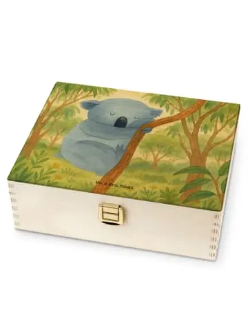 Unsere Holz-Teekiste von Mr. & Mrs. Panda kombiniert Funktionalität mit zauberhaftem Design. Bedruckt mit den wunderschönen Motiven von Mr. & Mrs. Panda verleiht sie deinem Zuhause eine persönliche Note, auch wenn sie nicht personalisierbar ist. Der Druck ist fasertief und wunderschön, gefertigt mit umweltfreundlicher & nachhaltiger Tinte. Dekorative Layouts und Vorlagen machen die Box zu einem tollen Blickfang. Material: 7 mm Birke-Schichtholz an den Kanten gezinkt, Farbe: Natur – robust und natürlich. Die Teebox hat einen sicheren Verschluss und Einschlag-Scharnieren (nicht abschließbar). Die kompakte Form und das angenehme Gewicht machen die Box alltagstauglich und leicht zu handhaben. Innen ist die Box in sechs Fächer unterteilt, ideal als aufbewahrungsbox für teebeutel, tee kiste oder holzteekiste zur übersichtlichen Lagerung verschiedener Sorten. Ob du sie als box für tee, tee organizer box oder vorratsbox tee nutzt – diese Kiste bringt Stil und Ordnung. Ein schönes Geschenk für Freunde oder eine hübsche Ergänzung für dein eigenes Regal.Koala Motiv: Stell dir vor: Ein kleines Nest im Schlafzimmer, an der Wand ein Bild, das sofort Ruhe schenkt. Genau das macht dieses Motiv möglich. Ein müder Koala kuschelt sich an seinen Ast und lässt sich in die Welt der Träume gleiten. Die sanfte Farbgebung und die liebevollen Linien schaffen eine Atmosphäre, in der man gern zur Ruhe kommt. Besonders für abendliche Rituale, Kuschelzeiten oder als beruhigender Blickfang über dem Bett ist dieses Motiv wie geschaffen. Es erinnert daran, wie wichtig ein friedlicher Rückzugsort ist, in dem du deinem Kopf erlaubst, einfach mal loszulassen. Die Darstellung ist zärtlich, aber nicht zu kitschig – sie trifft genau den Ton zwischen Herz und Stil. Verschenke es an Freunde, die ein behagliches Schlafzimmer lieben, oder gönn dir selbst diese kleine Oase der Gelassenheit. Der Koala, verschlungen vom Traum, flüstert leise: „Gute Nacht, mein Freund.“ So wird jeder Abend ein wenig sanfter und das Einschlafen ein bisschen schöner.Freude verschenken: Mit der Small World Kollektion von Mr. & Mrs. Panda hältst du ein Stück pure Lebensfreude in den Händen. Jedes Produkt erzählt die Geschichte unseres wunderbaren Planeten und seiner kleinen Bewohner, festgehalten in farbenfrohen Aquarellen und begleitet von Sprüchen, die das Herz erwärmen. Ob du einem Freund ein Lächeln schenken oder dich selbst verwöhnen möchtest, die liebevoll gestalteten Motive unseres Tierreichs und die humorvollen Botschaften machen jedes Stück zu einem besonderen Schatz. Vom Küchentuch bis zum Schlüsselanhänger – lass dich von der Vielfalt und Schönheit der Small World Kollektion bezaubern und bringe ein Stückchen Glück in deinen Alltag.Unser Produkt wird gesucht als: Teeaufbewahrungsbox, Teebeutel-Box, Teekiste, Box für Tee, Tee Organizer Box, Tee Organizer, Schlafzimmer, tee box holz, tee organizer holz, Tee-Aufbewahrungsbox, Geschenk für Paare, Teebeutel Aufbewahrung, teekiste mit deckel, Aufbewahrungsbox Tee, tee aufbewahrung holz, Holzteekiste, holzkiste tee, teebox mit fächern, Teekasten, Teebeutel Aufbewahrungsbox, teebeutelbehälter, teebox holz, Träumen, teebox mit unterteilung, Teedose 6 Fächer, Teebox, Teebeutel Organizer, Koalabär, schichtholz teekiste, Holz Teedose Fächer, Teebehälter, Teeaufbewahrung, Tee Beutel Halter, Vorratsbox Tee, teebehälter holz, teekiste mit verschluss, Teebeutel Box, Holzteebox, Bär, Box für Teebeutel, Teebeutelbox, teebeutel halter holz, Teebox mit Verschluss, teedose mit fächern, Teekästchen, Teedose mit Motiv, Teedose, Holz Teebox, teedose mit deckel, Teebeutel Behälter, teedose holz, teekiste holz, Tiermotive, teekiste mit fächern, Tee Box, Aufbewahrungsbox für Teebeutel, Traumland, Teebox für Teebeutel, Teebox Natur, Koala, Aufbewahrung Tee, Tee Kiste, teebehälter mit fächern, teebeutelbox holz, Aufbewahrungsbox für Tee, holz teedose, schlafen, birke teekiste, Tee