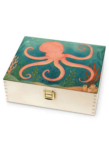 Für echte Tee-Liebhaber: unsere Teekiste von Mr. & Mrs. Panda ist die ideale box für tee und sorgt für Übersicht in deiner Menschmlung. Als teeaufbewahrungsbox aus hochwertigem Birke-Schichtholz (Kanten 7 mm gezinkt) bietet sie eine natürliche Optik und stabile Menschrbeitung. Der farbtiefe Druck mit umweltfreundlicher Tinte zeigt die typischen, liebevollen Motive von Mr. & Mrs. Panda und macht die holzteekiste zum dekorativen Highlight. Innen ist die holzteebox in sechs Fächer eingeteilt, damit du unterschiedliche Tees clever und aromaschonend sortieren kannst. Verschluss mit Einschlag-Scharnier (nicht abschließbar) sorgt für sicheren Halt. Maße: siehe Produktbeschreibung, Gewicht: siehe Produktbeschreibung – ideal dimensioniert für Regal und Küchentheke. Die dekorativen Layouts und Vorlagen machen die Box zur perfekten vorratsbox tee oder Geschenkidee. Hinweis: Die Teekiste ist nicht personalisierbar. Ob als praktische tee organizer box oder als hübsche Aufbewahrung für deine Teebeutel – diese Teekiste verbindet Funktionalität mit dem verspielten Stil von Mr. & Mrs. Panda.Tintenfisch Meerestier: Stell dir vor: Ein fröhlicher, roter Tintenfisch schwebt leicht im warmen Meer und winkt dir mit seinen vielen Armen zu. Er ist neugierig, verspielt und ein bisschen frech — genau wie ein guter Freund, der dich zum Lächeln bringen will. Seine kräftige Farbe leuchtet zwischen sanften Wellen, und jedes seiner Arme bewegt sich wie ein kleiner Tanz, der das Wasser um ihn herum zum Glitzern bringt. Du kannst beinahe das leichte Plätschern hören, wenn er neugierig einen Blick in die Unterwasserwelt wirft. Dieser kleine rote Tintenfisch ist mehr als ein Motiv: Er ist ein Moment der Leichtigkeit, der dich daran erinnert, das Leben mit offenen Armen zu umarmen. Ob als Geschenk für einen Meer-Liebhaber oder als fröhlicher Akzent für dein Zuhause — sein freundliches Winken sorgt für sonnige Stimmung, selbst an grauen Tagen. Die Illustration fängt die Wärme des Ozeans ein und zeigt, wie wunderbar es ist, neugierig zu bleiben und die Welt spielerisch zu entdecken. Hol dir dieses Bild und lass dich vom roten Charme dieses Meeresbewohners verzaubern — er winkt dir zu und sagt: Komm, lass uns zuMenschmen staunen!Freude verschenken: Tauche ein in die zauberhafte Welt der Small World Kollektion von Mr. & Mrs. Panda. Jedes einzelne der mit Liebe handgezeichneten Aquarell-Motive fängt die Schönheit und den Charme unserer tierischen Freunde ein und kombiniert sie mit lebensbejahenden, lustigen Sprüchen, die dir jeden Tag ein Lächeln ins Gesicht zaubern. Von flatternden Nachtfaltern über summende Bienen bis zu zwitschernden Vögeln – diese Kollektion bringt die Leichtigkeit und Freude der Natur direkt zu dir nach Hause. Entdecke die Vielfalt des Lebens durch unsere Gute-Laune-Produkte, die nicht nur einzigartig sind, sondern auch als perfekte Geschenkidee dienen. Lass dich von der Small World Kollektion inspirieren und finde dein Lieblingsstück, das nicht nur dein Herz erfreut, sondern auch deinen Alltag mit positiver Energie und Humor bereichert.Unser Produkt wird gesucht als: Box für Tee, Teebeutelbox, holz teedose, teebeutel halter holz, tee organizer holz, Box für Teebeutel, teebox mit unterteilung, Aufbewahrung Tee, teedose mit deckel, Aufbewahrungsbox Tee, Holz Teedose Fächer, Teebeutel Aufbewahrungsbox, Ozean, teebehälter mit fächern, Teebeutel-Box, Tee Organizer Box, Tee-Aufbewahrungsbox, Aufbewahrungsbox für Teebeutel, teekiste mit verschluss, Krake, Holz Teebox, Tee Beutel Halter, holzkiste tee, Teedose, teekiste mit unterteilung, Tee Organizer, Arme, Teebeutel Organizer, Tee Sortierbox, teebehälter holz, teedose mit fächern, Tee Box, teebeutelbehälter, teekiste mit deckel, teebox mit fächern, birke teekiste, teebox holz, Teebox für Teebeutel, Teebeutel Behälter, Teebeutel Aufbewahrung, Tee Kiste, Teedose 6 Fächer, teebeutelbox holz, Teebox mit Verschluss, Geschenk für Paare, Teekist
