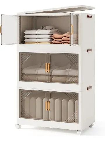 Beschreibung: Schick und praktisch, bietet er ein müheloses Falt- und Stapeldesign, seitliche Schnallen zum Verriegeln und transparente Türen, die die Gegenstände sichtbar und ordentlich anordnen – perfekt für den cleveren Organisierer. Rollen Sie ihn mühelos auf seinen 360°-Rollrollen oder verriegeln Sie ihn an Ort und Stelle. Ob Sie das Chaos in Ihrem Schlafzimmer, Wohnzimmer oder Vorratskammer zähmen, dieser Aufbewahrungsbehälter ist Ihre Geheimwaffe für ein elegantes, organisiertes Zuhause.Eigenschaften:Praktische Aufbewahrungslösung für Bücher, Snacks, Kleidung und Bettwäsche 2 Öffnungsmöglichkeiten, um die Gegenstände im Inneren leicht zugänglich zu halten Praktische faltbare Aufbewahrungsboxen, einfach einzurichten und zu verstauen 3 Boxen mit einem Deckel und Schnappverschlüssen für einfaches Stapeldesign Material: PP Gesamtmaße: 65 x 39 x 109 cm (L x B x H) Maße jeder Box: 65 x 39 x 36 cm (L x B x H) Maße der zusammengeklappten Box: 62,5 x 39 x 6 cm (L x B x H) Tragfähigkeit jeder Box: 20 kg Nettogewicht: 6 kgLieferungsumfang: 1 x Stapelbare Aufbewahrungsboxen 1 x Anleitung