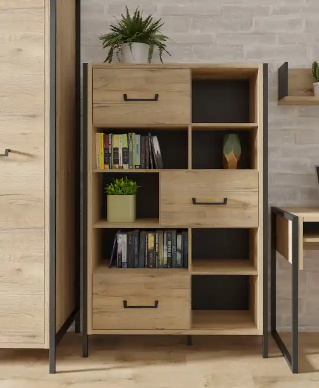 modernes Regal. 3 Türen. 7 offene Fächer. viel Stauraum. Metallgriffe schwarz