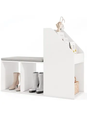 Beschreibung: Verbessern Sie die Organisation und den Stil Ihres Zuhauses mit unserer vielseitigen Schuhbank! Mit 3 geräumigen Seitenfächern und 3 geräumigen Ablagefächern unten hält die Eingangsbank Schuhe und häufig verwendete Gegenstände ordentlich und zugänglich. Das weiche Sitzkissen mit einem atmungsaktiven Stoffbezug bietet ein bequemes Sitzerlebnis und kann zum Reinigen leicht abgenommen werden. Mit ihrer modernen, schlichten Ästhetik passt diese Bank wunderbar in verschiedene Räume, darunter Eingangsbereiche, Wohnzimmer, Schlafzimmer und Garderoben. Die Schuhbank ist eine praktische Ergänzung für aufgeräumte und stilvolle Häuser.Eigenschaften: Geräumige Ablagefächer halten Schuhe und Alltagsgegenstände in Reichweite Abnehmbares Sitzkissen bietet eine gemütliche Sitzgelegenheit Der Bezug mit Reißverschluss ist maschinenwaschbar und somit pflegeleicht Verdickte Bretter bieten eine hohe Tragkraft Abgerundete Ecken verringern das Verletzungsrisiko Rutschfeste Fußpolster schützen den Boden vor Kratzern Modernes und schlichtes Design ergänzt eine Vielzahl von Einrichtungsstilen Geeignet für verschiedene Umgebungen wie Eingangsbereich, Wohnzimmer, Schlafzimmer, Garderobe usw. Vor der Verwendung muss der Stuhl zusammengebaut werden Materialien: Holzwerkstoffplatte, Stoff, Schwamm Gesamtmaße: 97 x 40 x 79 cm Größe jedes offenen Fachs unter dem Sitz: 29 x 40 x 40 cm Größe des seitlichen offenen Fachs: 37,5 x 35,5 x 37,5 cm Tragfähigkeit des Sitzes: 90 kg Gesamttragfähigkeit: 150 kg Nettogewicht: 18 kgLieferungsumfang: 1 x Schuhbank 1 x Anleitung
