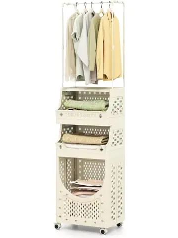 Beschreibung: Dieser 2-in-1 Wäschewagen kombiniert eine Kleiderstange zum Lüften, einen geräumigen Wäschesack und einen Korb für Kleidung, Socken oder Decken sowie ein oberes Ablagefach für Waschmittel. Zusätzlich bieten 8 Haken einfachen Halt für Handtücher oder Bürsten. Die werkzeugfreie Montage ermöglicht schnelles Auf- und Zusammenklappen für eine kompakte Lagerung. Mit 4 Universalrollen (2 feststellbar) lässt sich der Wagen mühelos von Raum zu Raum schieben und sicher positionieren. Erhöhte Kanten und das ventilierte Design halten Ihre Wäsche sicher und frisch. Machen Sie den Wäschetag einfacher mit diesem vielseitigen 2-in-1 Wagen!Eigenschaften: Geräumiger Wäschesack für voluminöse Wäsche Korb zur Organisation von Kleidung oder täglichen Gegenständen Oberes Ablagefach für Waschmittel und Zubehör 6 Haken verhindern das Verlieren kleiner Gegenstände 4 leichtläufige Rollen für den einfachen Transport 2 feststellbare Rollen für Stabilität während der Nutzung Erhöhte Kanten verhindern das Herausfallen von Gegenständen Belüftete Paneele fördern Luftzirkulation für frische Lagerung Zusammenklappbar für einfache Aufbewahrung Material: PP, Metall Wäschesack-Kapazität: 40 L Korb-Kapazität: 21 L 4 Etagen mit Kleiderstangen Produktmaße: 40 x 30 x 158 cm Gewicht: 3,5 kgLieferungsumfang: 1 x Wäschewagen 1 x Bedienungsanleitung