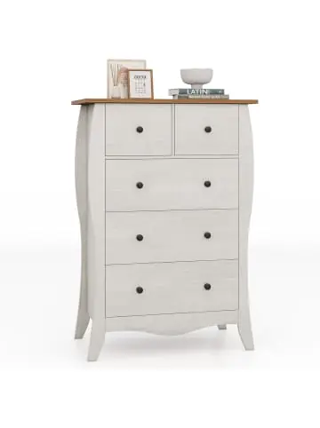 Beschreibung: Entdecken Sie den Charme eines rustikalen Bauernhauses mit dem ultimativen Stil-Booster für Ihr Zuhause! Unsere Bauernhauskommode mit 5 Schubladen ist nicht nur ein Möbelstück, sondern ein Stil-Statement, das jeden Raum mit einer Mischung aus Gemütlichkeit und Eleganz verwandelt. Diese atemberaubende Kommode bietet geräumigen Stauraum mit 5 faltbaren Schubladen, optimiert für einfache Installation und aufgeräumtes Wohnen. Sie ist aus hochwertigen Materialien gefertigt und auf Langlebigkeit ausgelegt und hält den Strapazen des täglichen Gebrauchs stand. Mit unserem zuverlässigen Kippschutz-Set wird die Sicherheit nie beeinträchtigt. Sie ist vielseitig einsetzbar und ideal, um das Aussehen Ihres Wohnzimmers, Schlafzimmers oder Flurs zu verbessern. Steigern Sie mühelos den Stilfaktor Ihres Zuhauses!Eigenschaften: Mit geräumiger Schrankplatte und 5 großen Schubladen für den täglichen Aufbewahrungsbedarf Ausreichend Platz für Socken, Bettlaken, Unterwäsche und Accessoires Die klappbaren Stoffschubladen lassen sich leicht zusammenbauen 1 Kippschutz-Set verhindert ein Umkippen Gut verarbeitetes Design für ein dezentes Bauernhaus-Flair Leicht zu reinigende Oberfläche spart Zeit und Mühe Stabile Stützfüße sorgen für hohe Tragfähigkeit Schlanke Griffe zum einfachen Herausziehen der Schubladen Eines unserer beliebtesten Schlafzimmermöbel im Bauernhaus-Stil für den Bau Ihres Traumhauses Material: Holzwerkstoff, Vliesstoff, Polyester Gesamtmaße: 67,5 x 38,5 x 97 cm (L x B x H) Erhöhte Höhe vom Boden: 9 cm Maximale Tragfähigkeit: 61 kg Nettogewicht: 18 kgLieferungsumfang: 1 x Kommode mit Schubladen 1 x Anleitung
