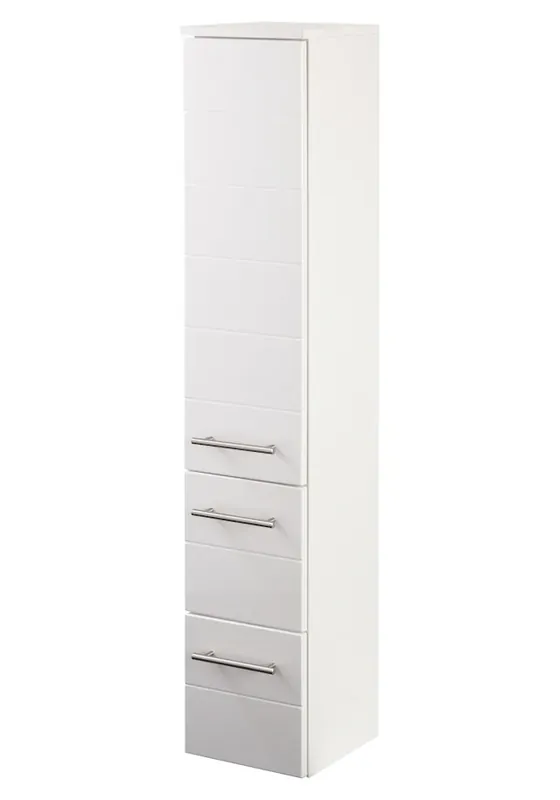 Für stehende und hängende Montage geeignet. Ausführung der Fronten mit modischen Querrillen. Badmöbel Made in Germany. 5 Jahre Herstellergarantie auf alle Möbelteile