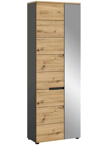 Unser Garderobenschrank mit den Maßen 65x190x37 cm präsentiert sich in edlem Basaltgrau Nachbildung und Artisan Nachbildung, was Ihrem Eingangsbereich eine moderne und stilvolle Note verleiht. Mit ausreichend Stauraum für Jacken, Schuhe und Accessoires ist dieser Schrank die ideale Ergänzung für eine organisierte Garderobe. Entdecken Sie jetzt dieses praktische und ästhetisch ansprechende Möbelstück für Ihr Zuhause.
