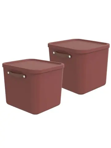 Aufbewahrungsbehälter 40 l MALOJA-Set Erstellen Sie Ihr perfektes und durchdachtes Ordnungssystem mit unseren Boxen aus unserer designorientierten MALOJA Linie. Die Aufbewahrungsboxen mit einem Fassungsvermögen von 40 Litern ermöglichen eine Traglast von bis zu 40 kg. Dank der bequemen und ergonomischen Griffe lässt sich das Tragen mühelos bewerkstelligen. Durch ihre Größe eignen sich diese Boxen ideal zur Aufbewahrung einer Vielzahl verschiedener Gegenstände und sind somit äußerst vielseitig einsetzbar. Der pflegeleichte Kunststoff ermöglicht eine einfache Reinigung sowohl im Inneren als auch im Äußeren. Produktinformationen: Das Set beinhaltet 2 Aufbewahrungsboxen 40l der Serie MALOJAaus pflegeleichtem KunststoffTraglast von bis zu 40kgvielseitig einsetzbar