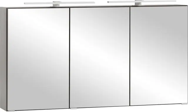 Gedämpfte Scharniere. Bei der mittleren Tür ist der Türanschlag wechselbar. Inklusive LED-Aufbauleuchte. Made in Germany. Maße (B/H/T): 120/64/20 cm