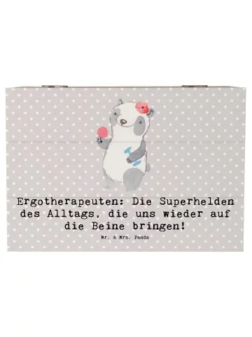 Diese Holzkiste „Ergotherapeutin“ von Mr. & Mrs. Panda ist ein liebevolles Geschenk für alle, die in der Ergotherapie Großes leisten. Mit dem herzlichen Spruch „Ergotherapeuten: Die Superhelden des Alltags, die uns wieder auf die Beine bringen!“ wird jede Schachtel zur persönlichen Wertschätzung – ideal für Kollegen, Freundinnen oder als Dankeschön nach einer erfolgreichen Therapie. Das zarte Aquarellmotiv strahlt Wärme und Professionalität aus und macht die Box zu einer dekorativen Schatztruhe, die Erinnerungen schützt und Momente bewahrt.Sie ist vielseitig einsetzbar: als Erinnerungskiste für Fotos, persönliche Andenken, Zertifikate oder als praktische Aufbewahrungsbox im Behandlungszimmer. Als Geschenkbox ist sie nachhaltig und wiederverwendbar – ein Präsent, das lange Freude bereitet und immer wieder neu gefüllt werden kann. Die Kiste lässt sich leicht öffnen und schließen und passt sich stilvoll jedem Raum an. Wer ein persönliches, wertschätzendes Geschenk sucht, trifft mit dieser Holzkiste die perfekte Wahl.- Liebevolles Design mit handgezeichnetem Aquarellmotiv – Herzlicher Spruch speziell für Ergotherapeutinnen – Vielseitig nutzbar als Erinnerungskiste, Fotokiste, Schmuckkiste oder Geschenkbox – Nachhaltige, wiederverwendbare Geschenkidee – Pflegeleicht und formschön