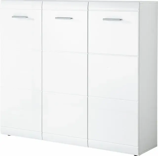 134 x 36 x 120 cm (BxTxH). Verstellbare Einlegeböden zur individuellen Gestaltung. Edle Fronten mit Hochglanz-Oberfläche.. Spanplatte kaschiert, MDf foliert, Kanten tiefgezogen. Made in Germany