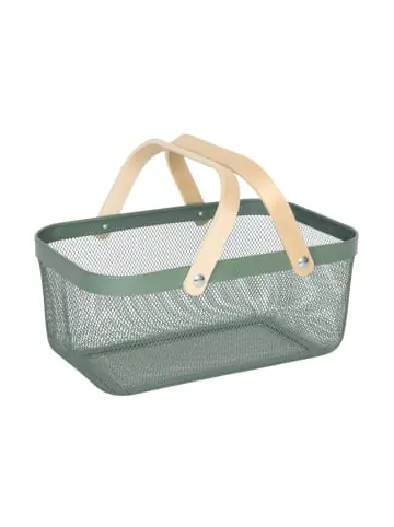 Der Metallkorb ist ein echter Aufbewahrungs-Allrounder und bietet Dir Stauraum für diverse Haushaltsgegenstände. Dabei macht das geräumige, eckige Körbchen in jedem Raum eine gute Figur. Nutze den Utensilienkorb für Kosmetik oder Gästehandtücher im Bad oder verstaue Kleidungsstücke wie Socken, Unterwäsche und Accessoires platzsparend. In der Küche bringt der Allzweckkorb Ordnung in Deine verpackten Vorräte. Der Mix aus Metall und Holz verleiht dem Gitterkorb einen modernen Look.Drahtkorb mit Henkel im Detail- Maße H x B x T: ca. 17,5 x 43 x 27 cm – Höhe mit Henkel: ca. 30 cm- Innenmaße H x B x T: ca. 17 x 39 x 24 cm – Max. Traglast: 5 kg – Gewicht: ca. 800 g- Material: Stahl, Holz – Verschiedene FarbenModerner Aufbewahrungskorb aus Metall- Praktisches Aufbewahrungskörbchen für zu Hause – Vielseitig nutzbar in Bad, Küche, Wohnzimmer etc. – Für Kosmetik, verpackte Lebensmittel, als Dekokorb und mehr – Offenes Design aus Metalldraht bietet guten Überblick über Inhalt – Henkel aus Holz setzt optische Kontraste zum Metallkörbchen – Auch zur Aufbewahrung oder zum Transport kleiner Einkäufe Lieferumfang- 1x Metall-Aufbewahrungskorb in Farbe nach Wahl – Dekoartikel sind im Lieferumfang nicht enthalten