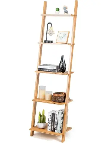 Beschreibung: Unser Leiterregal ist eine ideale Aufbewahrungslösung für Ihre Schlafzimmer, Wohnzimmer und Büros. Dieses aus hochwertigem Bambus gefertigte Leiterregal ist nicht nur langlebig und robust, sondern weist auch eine gute Tragfähigkeit auf. Abgesehen davon erleichtert die feine Handwerkskunst auch die Reinigung und Wartung. Ausgestattet mit einem 5-stufigen offenen Lagerregal in verschiedenen Größen bietet unser Leiterlager viel Stauraum für die Organisation Ihrer Gegenstände und sorgt gleichzeitig dafür, dass Ihr Zimmer sauber und ordentlich bleibt. Am wichtigsten ist, dass das Regal durch sein einzigartiges und platzsparendes Wanddesign den Platz optimal ausnutzt und für kleine Räume geeignet ist. Übrigens lässt sich das Bücherregal mit einer klaren Anleitung und nummerierten Teilen leicht zusammenbauen.Eigenschaften: Der robuste Bambusrahmen ist langlebiger und stabiler als Holz Das offene Lagerregal mit 5 Ebenen bietet viel Stauraum Der multifunktionale Präsentationsständer eignet sich für viele Räume Platzsparendes und leichtes Leiterregal ist für die Ecke geeignet Rutschfeste Fußpolster sorgen für allgemeine Stabilität Premium-Schrauben rosten nicht und sind fest verbunden Das Wandleiterregal ist stabil und hat eine Dreiecksstruktur Eine gute Aufbewahrungslösung für Wohnzimmer, Schlafzimmer und Badezimmer Einfache Montage mit klarer Anleitung Material: Bambus Gesamtmaße: 43 x 35 x 165 cm (L x B x H) Abstand zwischen den einzelnen Regalen: 35,5 cm Nettogewicht: 6 kg Max. Gewichtskapazität: 20 kg (jedes Regal)Lieferungsumfang: 1 x Leiterregal 1 x Anleitung