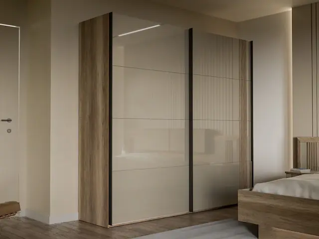 moderner Schwebetürenschrank. bietet eine Menge Stauraum und schafft Ordnung in Ihrem Zuhause. die Hochglanzfront rundet die Gesamtoptik perfekt ab. die Metallgriffleisten passen sich optisch sehr gut an das Design an. Zubehör ist optional bestellbar