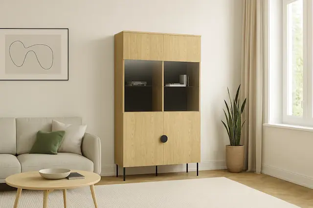 Großzügiger Stauraum trifft Design: Die Vitrine vereint Funktionalität mit Stil – ideal für alle, die Ordnung und Ästhetik gleichermaßen schätzen. Praktisch und alltagstauglich: Dank der hohen Füße kann ein Staubsaugroboter problemlos unter die Vitrine fahren – für eine einfache Reinigung. Hochwertige, zertifizierte Materialien: Aus geprüften Materialien gefertigt – robust, langlebig und sicher im täglichen Gebrauch. Stilvolle Akzente: Feine Metallgriffe und hohe Metallfüße verleihen der Vitrine einen Hauch von Eleganz und modernen Luxus. Europäische Qualität: In Europa entworfen und hergestellt, mit Liebe zum Detail und hohem Anspruch an Design und Verarbeitung