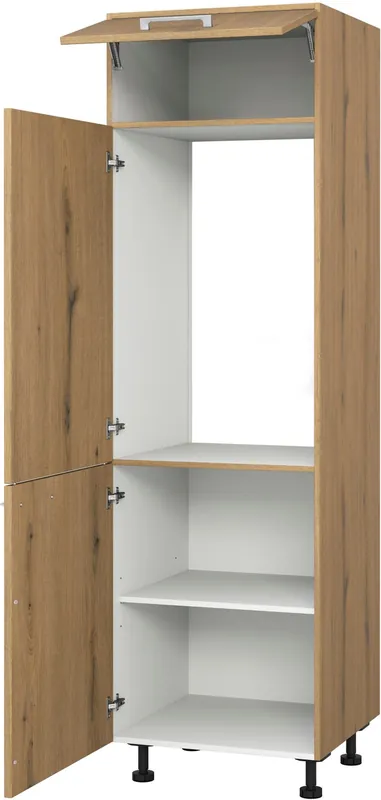 1 Einbaunische mit Tür für integrierten Kühlschrank 880 mm. 1 Klappe = zusätzlicher Stauraum über dem Kühlschrank. passend zur Serie Trea. Made in Germany. 1 verstellbarer Einlegeboden