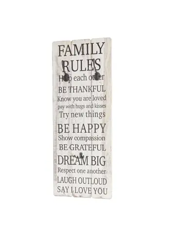 – Markeninhaber TÜV-Süd QM zertifiziert mit Nr. 12 100 59626 TMS für Qualitäts-Management in Deutschland – Lieferumfang: 1x Wandgarderobe – Massives Paulowniaholz – Kleiderhaken aus Metall – Mit vielen unserer Shabby-Angebote kombinierbar – 3 Haken – Kleiderhaken individuell anbringbar – Schwarz-weiß-Stil – Landhausstil – Pflegeleicht – In kurzer Zeit montiertGesamtmaße (ca.):Höhe: 76 cmBreite: 31 cmTiefe (mit Kleiderhaken): 10 cmTiefe (ohne Kleiderhaken): 1 cm Maße große Kleiderhaken (ca.):Höhe: 10 cmBreite: 3 cmTiefe: 5 cm Maße kleiner Kleiderhaken (ca.):Höhe: 3 cmBreite: 5 cmTiefe: 3 cm Hübsch hässlich, schick schäbig, Trash ist das neue Neu – und vor allem der allerletzte Schrei!! Wir präsentieren: den Shabby-Look. Lassen Sie sich von der lädiert anmutenden Oberfläche nicht täuschen, die Produkte dieser Serie sind qualitativ hochwertig verarbeitet und wurden nur aus den besten Materialien gefertigt. Die Holzelemente wurden hauptsächlich aus der Paulownie hergestellt, einem auch schon in Europa kultivierten Wertholzbaum, der aufgrund seiner Leichtigkeit und hohen Stabilität auch als das Aluminium der Hölzer bezeichnet wird. Die gebürstete Oberfläche verleiht jedem einzelnen unserer Shabby-Produkte einen ganz eigenen, individuellen Used-Look, der einerseits rustikal, andererseits aber auch spielerisch leicht wirkt und sich somit nahtlos in jede Umgebung einfügt, es aber auch schafft Akzente zu setzen. Ihrer Kreativität sind hier keinerlei Grenzen gesetzt. Die universelle Möbelserie im Vintage-Look. Sie wünschen von einer Wand mehr als nur Ihr Haus zusammen zu halten? Mit dieser Wandgarderobe können Sie jede Wand praktisch und dekorativ aufwerten! Durch den Shabby-Look wirkt jeder Flur, jede Diele oder auch das Schlafzimmer viel wohnlicher. Drei individuell anbringbare Haken bieten Ihnen die Möglichkeit, Ihre Kleidung schnell greifbar und übersichtlich platzsparend unterzubringen. Hinweis: Leider wurden die Bohrungen falsch gesetzt, dennoch lassen sich die Schrauben problemlos eindrehen.Versandzustand: Teilmontiert–Sicherheitshinweise für Teilartikel mit Artikelnummer 44828 Dieser Artikel ist ein Wanddekoration und sollte nur als solches verwendet werden. Der Artikel ist nur für den Innenbereich geeignet. Beim Bohren / Hämmern in Wand oder Decke auf Kabel, Rohre, Wärmedämmung, sowie Gas- und Wasserleitungen achten!Vorsicht Erstickungsgefahr! Verpackungsmaterial, wie Plastikbeutel, gehören nicht in Kinderhände. Bitte von Babys und Kleinkindern fernhalten! Nicht über den Kopf ziehen! Vorsicht: Verschluckungsgefahr! Achtung dieser Artikel kann verschluckbare Kleinteile enthalten! Halten Sie die Kleinteile von Kindern fern! Prüfen Sie den Artikel regelmäßig alle 3-6 Monate auf Beschädigungen und gelöste Verbindungen. Ziehen Sie lose Schrauben wieder fest an! Sollten Beschädigungen entdeckt werden, darf der Artikel nicht mehr genutzt werden! Benutzen Sie diesen Artikel nur für die bestimmungsgemäße Verwendung, im technisch einwandfreien Zustand und für private Zwecke. Andere Verwendungen gelten als nicht bestimmungsgemäß und können zu schweren Verletzungen und Beschädigungen führen. Für aus bestimmungswidriger Verwendung entstandene Schäden übernimmt der Hersteller keine Haftung.Allgemeine Hinweise: Bitte lesen Sie alle Hinweise sorgfältig durch, bevor Sie den Artikel aufbauen und verwenden. Verwahren Sie die alle Sicherheitsinformationen und Aufbauanleitungen gut auf. Für Ihre eigene Sicherheit und die Ihres Produktes, befolgen Sie bitte die Sicherheitshinweise. Eine falsche Handhabung könnte zu ernsten Verletzungen, beschädigtem Eigentum oder sogar dem Tod hinauslaufen.