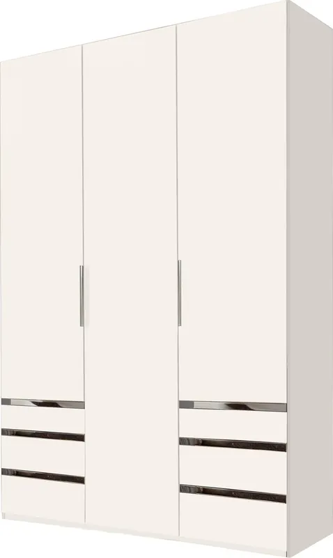 Unter den Außentüren jeweils 3 Schubkästen. Sockelhöhenverstellung zum Ausgleich von Fußbodenunebenheiten bis zu 15mm. Chromfarbene Metallgriffleisten. 6 Schubladen mit Selbsteinzugs-Funktion