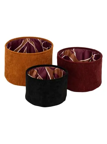 Set aus Samt-Aufbewahrungskörben – eine praktische und stilvolle Möglichkeit, Ordnung im Zuhause zu schaffenPraktisches Set mit 3 Körben: Die Samtkörbe AUTUMN in drei Größen (29 cm, 25 cm, 21 cm) eignen sich ideal zur Aufbewahrung verschiedener Gegenstände im Zuhause. Hochwertige Materialien: Hergestellt aus Polyester, EVA (Ethylen-Vinylacetat) und Stahl, was Langlebigkeit und ein ansprechendes Aussehen gewährleistet. Stylisches Innendesign: Das Innere der Körbe ist mit geometrischen Mustern in herbstlichen Farben verziert, die jedem Raum Eleganz und Wärme verleihen. Vielfältige Anwendungsmöglichkeiten: Die Körbe können zur Aufbewahrung von Spielzeug, Büchern, Heimtextilien oder Dekorationsaccessoires verwendet werden und helfen, Ordnung zu halten. Kompakte Maße: Die Durchmesser der Körbe betragen 19 cm, 16 cm und 13 cm, was eine einfache Anpassung an verschiedene Räume im Zuhause ermöglicht.
