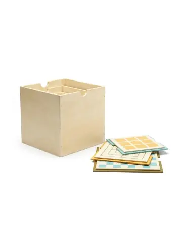 Das Set besteht aus 3 Holz- Aufbewahrungsboxen. Sie passen ineinander und jede Box hat einen Deckel, der auch als Spielbrett genutzt werden kann. Spielfiguren sind NICHT enthalten, hier können alle möglich Spielsachen aus dem Kinderzimmer genutzt werden wie z.B. Bausteine, kleine Figuren. Lack auf Wasserbasis Achtung! Nicht für Kinder unter drei Jahren geeignet wegen verschluckbarer Kleinteile, Erstickungsgefahr.Maße: 25 x 25 x 25 cm Material: Sperrholz Empfohlen für Kinder ab 36 Monaten.