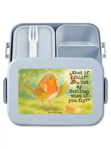 Bento-Brotdose von Mr. & Mrs. Panda – die perfekte Wahl, wenn du eine durchdachte und hübsche Brotdose suchst. Unsere Bento-Brotdose verfügt über herausnehmbare Einsätze und eine kleine Snackgabel, damit du deine Mahlzeiten clever trennen kannst. Die Materialien sind Element-frei und Freundlich, sodass nichts an Geschmack oder Sicherheit fehlt. Schüssel und Einsätze sind mikrowellengeeignet (ohne Deckel) und machen das Aufwärmen zum Kinderspiel. Die Brotdose ist spülmaschinenfest, was die Reinigung enorm vereinfacht. Erhältlich in Salbeigrün, Hellblau und Pastellrot – frische Farben für jeden Tag. Maße: kompakte Außenmaße, Inhalt: großzügiges Fassungsvermögen, Gewicht: angenehm leicht. Hergestellt aus PP, TPE und ABS und mit einer Druckfläche, ideal zum Personalisieren oder Bedrucken. Ob für die Schule, das Büro oder unterwegs – die clevere Innenaufteilung hält Snacks getrennt und sorgt für ansprechende Lunchbox-Momente. Robust, leicht und elegant gestaltet – diese Bento-Brotdose begleitet dich zuverlässig durch den Tag und macht das Mittagessen abwechslungsreich und praktisch.Rotkehlchen „What if I fall?“-Motiv: Lasst uns gemeinMensch das kleine Rotkehlchen bewundern, welches am Rande des Abenteuers steht. Die winzigen Füße im Grasse Menschnkert, den Blick fest auf die offene Weite gerichtet. Das Motiv mit dem Spruch „What if I fall? Oh, but my darling, what if you fly?“ ist ein zartes, aber kraftvolles Statement für jeden, der vor einer Entscheidung steht. Es ist eine Hommage an den Glauben an sich selbst und die verborgenen Kräfte, die in uns schlummern. Lass dich von diesem Motiv inspirieren und fühle die behutMensche Stärke, die darin liegt, über den eigenen Schatten zu springen und zu erkennen, dass wahres Wachstum oft genau dann geschieht, wenn wir bereit sind, unsere Komfortzone zu verlassen.Freude verschenken: Mit der Small World Kollektion von Mr. & Mrs. Panda hältst du ein Stück pure Lebensfreude in den Händen. Jedes Produkt erzählt die Geschichte unseres wunderbaren Planeten und seiner kleinen Bewohner, festgehalten in farbenfrohen Aquarellen und begleitet von Sprüchen, die das Herz erwärmen. Ob du einem Freund ein Lächeln schenken oder dich selbst verwöhnen möchtest, die liebevoll gestalteten Motive unseres Tierreichs und die humorvollen Botschaften machen jedes Stück zu einem besonderen Schatz. Vom Küchentuch bis zum Schlüsselanhänger – lass dich von der Vielfalt und Schönheit der Small World Kollektion bezaubern und bringe ein Stückchen Glück in deinen Alltag.Unser Produkt wird gesucht als: Rotkehlchen, Snackbox, Bentobox, Bento Box, Bento-Brotdose, Spruch Motivation, Meal Prep Box, Motivation Sprüche, Lebensmittelbehälter, Essensbehälter, Vesperbox, Jausenbox, Lunchbox, Snackdose, Vogel, Spruch Mut, Frischhaltedose, Tiere, Essensbox, What If I Fall, Motivationsbilder, fliegen