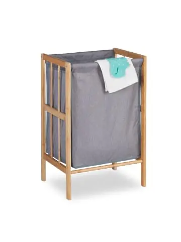 Mit dem schicken Wäschesammler holst Du Dir ein praktisches und zugleich dekoratives Accessoire in Dein Zuhause. Der Wäschesammler verfügt über 30 L Fassungsvermögen und bietet damit ausreichend Platz für Deine Schmutzwäsche. So kannst Du alle Schmutzwäsche praktisch an einem Ort lagern und musst diese vor dem nächsten Waschgang nicht mehr lästig zusammensuchen. Der Materialmix aus Stoff und natürlichem Bambus macht die Wäschetonne zum tollen Hingucker in Schlaf- oder Badezimmer.Wäschekorb im Detail – Gesamtmaße H x B x T: ca. 60 x 39 x 30 cm – Innenmaße H x B x T: ca. 42 x 32 x 26 cm- Fassungsvermögen: ca. 30 l – Gewicht: ca. 1,3 kg – Material: Polyester, Bambus – Farbe: Grau, NaturDekorative Wäschetonne mit Stoffeinsatz – Schmutzwäsche an einem zentralen Ort sammeln – Freistehende und platzsparende Wäscheaufbewahrung – Dreckwäschekorb in Bad oder Schlafzimmer platzieren – Materialmix aus grauem Stoff und natürlichem Bambus – Einfache und unkomplizierte Montage der WäscheboxLieferumfang – 1x Wäschesammler in Einzelteilen – Mit Anleitung und Montagematerial – Dekorationsartikel sind im Lieferumfang nicht enthalten