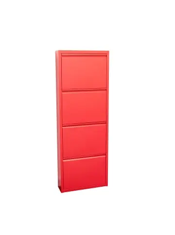 Schuhschrank Pisa mit 4 Türen in Metallrot. Komplett montiert wird ein Schuhschrank in der Farbe Rot geliefert, der sowohl Stil als auch Funktionalität in Ihr Zuhause bringt. Komplett montiert geliefert. RAL 3020 rot. Schublade innen: B46/L29/T13 cm. Kann auf den Boden gestellt oder an die Wand gehängt werden. Einzeln verwendbar. Türen öffnen sich gleichzeitig. Dieses Produkt wurde mit viel Liebe zum Detail hergestellt, was sowohl Ästhetik als auch hohe Haltbarkeit gewährleistet. Bei der Gestaltung wurde sowohl auf Funktionalität als auch auf Stil geachtet, was es zur perfekten Wahl für jeden Raum in Ihrem Zuhause macht. Die verwendeten Materialien sind von hoher Qualität, was dem Produkt eine lange Lebensdauer verleiht und dafür sorgt, dass es dem täglichen Gebrauch standhält. Ob zur Aufbewahrung oder als dekorative Ergänzung, dieses Produkt wertet Ihre Einrichtung auf und bringt zusätzlichen Komfort und Eleganz in Ihr Zuhause.