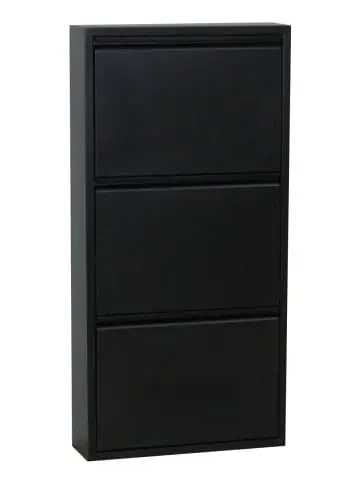 Schuhschrank Pisa mit 3 Türen aus Metall schwarz. Komplett montiert wird ein Schuhschrank in der Farbe Nan geliefert, der sowohl Stil als auch Funktionalität in Ihr Zuhause bringt. Unser Schuhschrank Pisa mit 3 Türen aus schwarzem Metall ist in einem schlichten und stilvollen Design gefertigt. Die Möbel werden montiert geliefert und sind bei Erhalt sofort einsatzbereit. Schöner Schuhschrank aus pulverbeschichtetem Metall, in dem Sie Ihre Schuhe platzsparend aufbewahren können. Mit diesem intelligenten Schuhschrank können Sie die Schuhaufbewahrung im Eingangsbereich, im Hauswirtschaftsraum oder im Schlafzimmer verwalten. Alle Türen öffnen sich gleichzeitig. Sie können den Schuhschrank auf den Boden stellen und an der Wand befestigen oder den Schuhschrank an die Wand hängen. Mit unseren Pisa-Schuhschränken können Sie in Ihrem Zuhause Ihren ganz persönlichen Stil kreieren zusammen mit einigen schönen Wohnaccessoires. Sie sind Teil der Mode und Teil der neuen Wohntrends, wie Sie sie in Zeitschriften und Wohnmagazinen sehen. Dieses Produkt wurde mit viel Liebe zum Detail hergestellt, was sowohl Ästhetik als auch hohe Haltbarkeit gewährleistet. Bei der Gestaltung wurde sowohl auf Funktionalität als auch auf Stil geachtet, was es zur perfekten Wahl für jeden Raum in Ihrem Zuhause macht. Die verwendeten Materialien sind von hoher Qualität, was dem Produkt eine lange Lebensdauer verleiht und dafür sorgt, dass es dem täglichen Gebrauch standhält. Ob zur Aufbewahrung oder als dekorative Ergänzung, dieses Produkt wertet Ihre Einrichtung auf und bringt zusätzlichen Komfort und Eleganz in Ihr Zuhause.