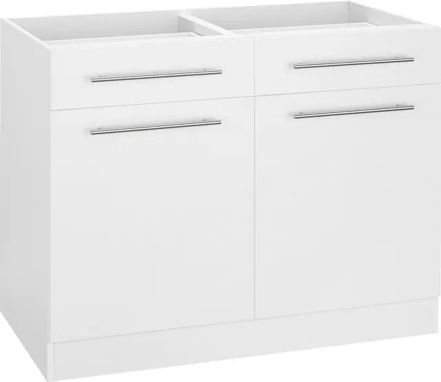 Maße (B/T/H): 100/57/82 cm. Ohne Arbeitsplatte – dadurch flexibel einsetzbar. Beliebig um weitere Schränke erweiterbar, z.B. auch über Eck. Made in Germany. Pflegeleichte Oberfläche