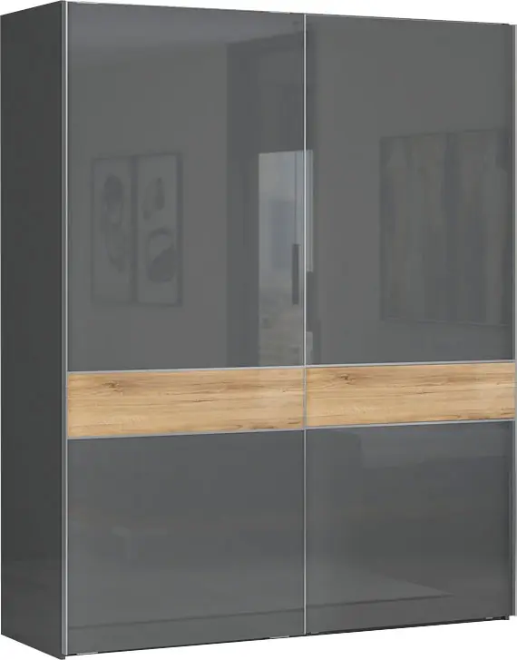 Wähle Deine passende Schrankbreite und nutze den Stauraum mit der großen Höhe von 224cm. Einlegeböden und Kleiderstangen sind individuell in der Höhe verstellbar.. Besonders unempfindlich und kratzfest durch eine hochwertige Hochglanz UV Lackierung in anthrazitfarben, kombiniert mit einer melaminbeschichteten, wallnussfb.Oberfläche.. Mit höhenverstellbaren Füßen um Unebenheiten im Boden auszugleichen. Soft-Close-Funktion für ein leises und sanftes Schließen der Türen. Aus FSC-zertifiziertem Holzwerkstoff, Made in Europe