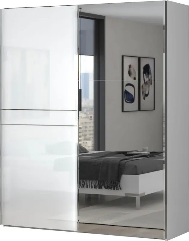 Wähle Deine passende Schrankbreite und nutze den Stauraum mit der großen Höhe von 224cm. Einlegeböden und Kleiderstangen sind individuell in der Höhe verstellbar.. Pflegeleichte, kratzfeste, sehr hochwertige Oberfläche durch UV Hochglanz- Lackierung. Die Aufleistungen sind aus verchromten Aluminium.. Mit höhenverstellbaren Füßen um Unebenheiten im Boden auszugleichen. Soft-Close-Funktion für ein leises und sanftes Schließen der Türen. Aus FSC-zertifiziertem Holzwerkstoff, Made in Europe