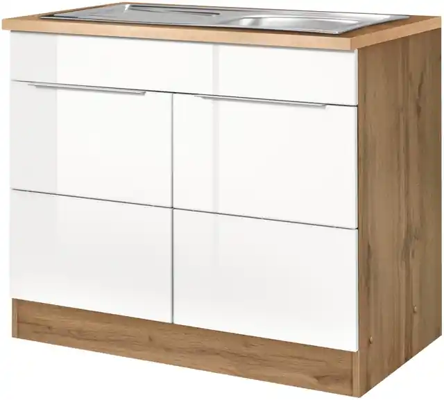 Maße (B/T/H): 100/60/85 cm. hochglänzende MDF-Fronten. inklusive Einbauspüle. Made in Germany. In mehreren Farben