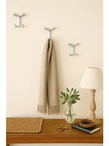 Funktional und trendig sind diese wandmontierten Design-Garderobenhaken im 3tlg.-Set aus Metalldruckguss, silberfarben.- Funkional und trendig- Maße ca. cm: (B/H/T) 9/11/6- Material: Metalldruckguss- Praktisches 3er-Set- Modernes Wohnen „Made in Italy“