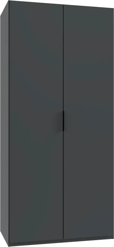 Die Falttüren mit einem leichtgängigen Mechanismus sind eine platzsparende Lösung mit gutem Überblick auf das Schrankinnere, sowie ein modernes, elegantes Erscheinungsbild.. Sockelhöhenverstellung zum Ausgleich von Fußbodenunebenheiten. Schrank stehend, von innen montierbar. Metallgriffe und -beschläge. Made in Germany