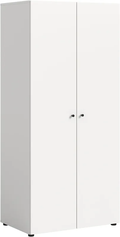 Geräumiger Drehtürenschrank in 2 verschiedenen Breiten mit idealen Maßen für kleine Räume oder Nischen. inkl. je 1 Kleiderstange und Einlegeboden bei Breite 80cm und 4 Böden bei 120cm Breite. Pflegeleichte Oberflächen mit einfacher Reinigung. Einfache Montage inkl. Aufbauanleitung. Das Möbel besteht aus FSC®-zertifiziertem Holzwerkstoff zum Schutz der Wälder