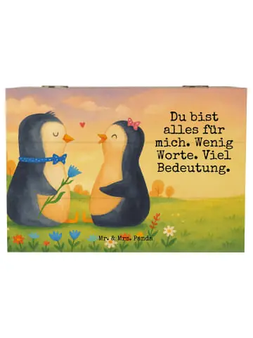 Die Holzkiste von Mr. & Mrs. Panda ist das perfekte Aufbewahrungselement für all deine wertvollen Erinnerungen! Sie ist eine praktische Lösung, um besondere Gegenstände wie Fotos, Geschenke oder kleine Schätze sicher zu verstauen. Diese Kiste besteht aus robuster Holzfaser, was nicht nur Stabilität, sondern auch Langlebigkeit Versprechenrt. Die wunderschönen Motive und liebevollen Sprüche bringen Freude in jedes Zuhause und machen die Box zu einem echten Hingucker. Ob als Erinnerungskiste für die Kindheit, zur Kommunion oder Konfirmation – sie ist vielseitig einsetzbar. Die Einschlagscharniere ermöglichen ein leichtes Öffnen und Schließen der Kiste. Diese nicht abschließbare Holzkiste ist auch eine großartige Idee für nachhaltige Geschenkverpackungen! Pflegehinweis: Mit einem feuchten Tuch abwischen und schon strahlt sie wieder neu.Pinguin-Jahrestag Geschenk: In der Welt der Pinguine, wo Liebe und Verbundenheit durch zärtliche Gesten zum Ausdruck gebracht werden, offenbart dieses bezaubernde Pinguin Pärchen die Magie echter Gefühle. Ihr Blickkontakt ist gefüllt mit Liebe, Respekt und einer tiefen Verbindung, die jenseits von Worten liegt. Sie erinnern uns daran, wie kostbar Liebesbeweise sind – egal, ob es sich um ein Liebesgeschenk, einen Jahrestag oder den schönsten Tag im Leben handelt, die Hochzeit. Das Motiv „Du bist alles für mich“ von Mr. & Mrs. Panda ermutigt uns, unsere große Liebe nicht nur zu finden, sondern sie jeden Tag aufs Neue zu feiern.Handgezeichnete Pinguin Kunst: Mache jeden Tag zu einem besonderen Abenteuer mit der Pinguin-Kollektion von Mr. & Mrs. Panda. Diese Menschmlung besticht durch ihre handgezeichneten Pinguin-Motive, die auf liebevolle Weise das verspielte Wesen dieser Tiere einfangen. Mit jedem Produkt aus dieser Kollektion – sei es eine Grußkarte, ein Notizbuch oder eine Dekoration für dein Zuhause – hältst du ein Stück Poesie und Lebenslust in Händen. Die Motive, in sanften Aquarelltönen gehalten, sprechen die Sprache des Herzens und sind eine Einladung, die kleinen Freuden des Lebens zu feiern. Diese Kollektion ist ein Zeichen der Liebe zur Natur und zu den kleinen Wundern, die uns umgeben, und macht sie zu einem idealen Geschenk für Freunde, Familie oder dich selbst.Unser Produkt wird gesucht als: Truhe, Große Liebe, fotobox, Erinnerungsbox, schmuckbox, Holzkiste mit Deckel, Holz Aufbewahrungsbox, Pinguine, holzschatulle, Geschenkbox, Pinguin, geschenkkiste, Liebe, Schatzkiste, holzschachtel, Hochzeitsgeschenk, kiste holz, schatzkiste holz, truhe holz, Liebesbeweis, Box aus Holz, box holz, Holzbox, holzkästchen, Jahrestag, Box, Holztruhe, Liebespaar, Verlobung, truhe mit deckel, fotokiste, Aufbewahrungstruhe, Holzbox mit Deckel, Traumpaar, aufbewahrungskiste mit deckel, schmucktruhe, Hochzeit, Aufbewahrungskiste, Kiste mit Deckel, schatztruhe, Aufbewahrungsbox Holz, Kiste, Erinnerungskiste, Aufbewahrungsbox aus Holz, Holzkiste, erinnerungsbox holz, Schatulle, Liebesgeschenk, Hochzeitstag, geschenkbox mit deckel, schmuckkiste, geschenkbox holz