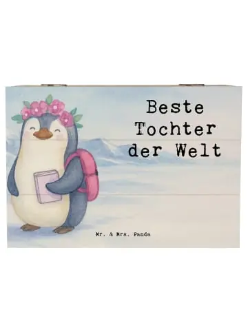 Entdecke die wunderschöne Holzkiste von Mr. & Mrs. Panda! Diese einzigartige Kiste ist nicht nur ein praktischer Stauraum für deine Schätze, sondern auch ein wahrer Blickfang. Sie ist ideal geeignet, um Erinnerungen von besonderen Anlässen wie Kommunionen, Konfirmationen oder einfach Fotos aus der Kindheit aufzubewahren. Hergestellt aus robuster Holzfaser bietet diese Kiste besondere Stabilität und Langlebigkeit. Ihre bedruckten Motive und Sprüche verleihen ihr einen charmanten Charakter, der jedes Herz erwärmt. Auch als nachhaltige und wiederverwendbare Geschenkbox ist sie perfekt geeignet. Ein weiteres praktisches Feature sind die Einschlagscharniere, die ein einfaches Öffnen und Schließen ermöglichen. Hinweis: Nicht abschließbar. Pflegehinweis: Einfach mit einem feuchten Tuch abwischen!Pinguin Beste Tochter – Geschenkidee: Erlebe die Magie des Elternseins mit diesem charmanten Pinguin! Er trägt fröhliche Blumen auf seinem kleinen Kopf und sagt stolz: „Beste Tochter der Welt“. Dieser Pinguin verkörpert das wunderbare Gefühl, deine Tochter großzuziehen. Mit einem Rucksack gepackt voller Träume und einem Buch voller Geschichten ist er bereit, die Welt zu erkunden, ebenso wie all die kleinen Abenteurer in deinen Armen. Er erinnert uns daran, wie wichtig es ist, unsere Töchter zu unterstützen und ihnen die Freiheit zu geben, sie selbst zu sein. Jede Umarmung ist eine Belohnung, und jedes „Danke“ ein bisschen mehr Licht in unser Familienleben. Das Motive soll die Strahlkraft deiner Tochter widerspiegeln, die das Glück in dein Leben bringt, während du ihr zuhörst und sie beim Aufwachsen begleitest.Beziehungen Kollektion: Tauche ein in die zauberhafte Welt von Mr. & Mrs. Panda, wo jedes Geschenk eine Geschichte erzählt und jede Illustration dein Herz berührt. Unsere Kollektion ‚Beziehungen‘ ist ein Liebesbrief an all die wundervollen Momente, die wir mit unseren Lieblingsmenschen teilen. Von herzerwärmenden Sprüchen bis hin zu liebevoll gestalteten Motiven – jedes Stück aus unserer Menschmlung ist eine Hommage an die Kraft der Liebe und Freundschaft. Egal ob du ein Geburtstagsgeschenk suchst, ein Dankeschön aussprechen möchtest oder einfach so Freude verschenken willst, bei Mr. & Mrs. Panda findest du das perfekte Mitbringsel. Denn was gibt es Schöneres, als die Menschen, die uns am Herzen liegen, mit einer kleinen AufmerkMenschkeit zu bedanken und ihnen ein Lächeln ins Gesicht zu zaubern? Lass dich inspirieren und finde dein persönliches Geschenk, das nicht nur von außen strahlt, sondern auch von innen leuchtet.Unser Produkt wird gesucht als: Geschenkbox, holzschachtel, Familie, schmuckkiste, kiste holz, Schatulle, Erinnerungsbox, Holzbox mit Deckel, geschenkbox mit deckel, Holzbox, Box aus Holz, schatzkiste holz, holzschatulle, Kind, Kinder, Belohnung, Kiste mit Deckel, Box, box holz, Kiste, Truhe, Holzkiste mit Deckel, Aufbewahrungskiste, Aufbewahrungsbox Holz, schmuckbox, Schatzkiste, schatztruhe, holzkästchen, Dankeschön, Holzkiste, geschenkbox holz, Mutter, truhe holz, Holztruhe, geschenkkiste, aufbewahrungskiste mit deckel, fotokiste, Erinnerungskiste, Holz Aufbewahrungsbox, Töchterchen, truhe mit deckel, Aufbewahrungsbox aus Holz, Geschenkidee, Vater, Töchter, schmucktruhe, erinnerungsbox holz, Kleine, Tochter, Geburt, Aufbewahrungstruhe, fotobox