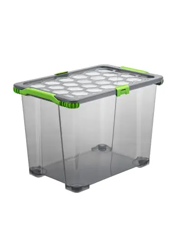 Kiste mit Rollen 65 l EVO TOTAL PROTECTION bietet viel Stauraum Mit der Box mit Rollen 65 l EVO TOTAL PROTECTION können Sie die Vorteile der Box für sich entdecken. Mit einem Fassungsvolumen von 65 Litern können Sie hier viele Dinge verstauen. Dies kann von Schuhen über Bettdecken bis hin zu Unterlagen reichen. Möchten Sie kleinere Dinge sicher darin lagern, bietet Ihnen das Zubehör verschiedene Möglichkeiten. Die Box von Rotho ist sehr robust und für den täglichen Einsatz geeignet. Die Serie EVO TOTAL PROTECTION wurde mit Dichtungen versehen, damit weder Schmutz noch Feuchtigkeit in die Box gelangen können. Um die Stabilität zu unterstützen, sind die Ecken mit Dämpfern versehen, die das Brechen verhindern sollen. Außerdem sind die Griffe besonders stabil. Damit kann die Box auch in vollem Zustand gut getragen werden. Möchten Sie nicht benutzte Boxen verstauen, können Sie sie ineinander stapeln, Boxen mit Deckel übereinander. Damit sparen Sie zusätzlich Platz. Diese und auch die Clear Boxen sollten in keinem Haushalt fehlen.